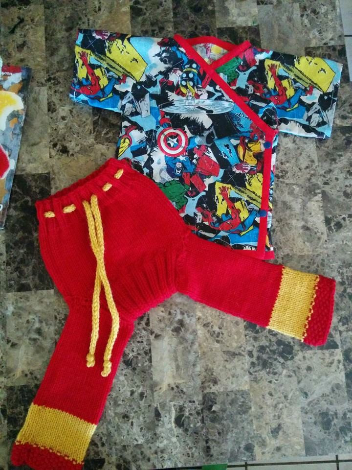 Today's Listing is a CUSTOM-MADE Jinbei play or birthday set, or really, anytime set. As this item is CUSTOM-MADE to your specifications, please allow 2-3 weeks for completion. This set consists of a cotton jinbei style top, with a hand-knit pair of pants, shorts or skooter of your choice. While the traditional Jinbei is closed with ties, mine are closed with snaps for ease of use. Please include a note of what type of character or fabric you would like your jinbei made from.