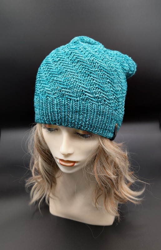 This is a hand knitted Beanie that fits slightly slouchy