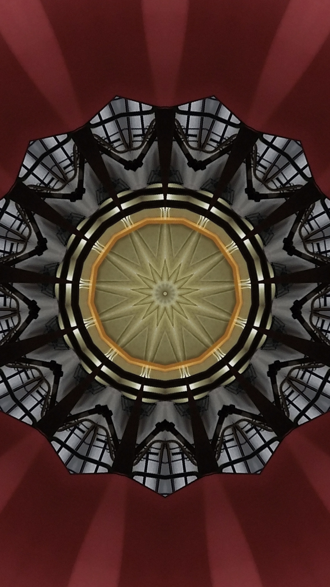5 phone wallpapers of a kaleidoscope/geometric patterns made from photographs using a kaleidoscope filter on my phone camera. Jean Crawford Evans, Purple Ducky Designs, retains the copyright to these images. 2025