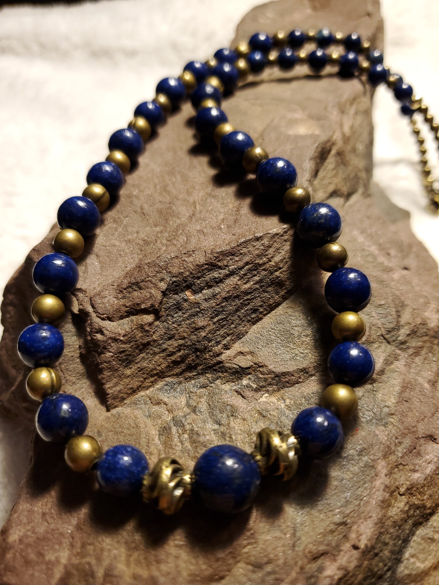 Lapis Lazuli in Bronze19" long, can be extended easily if needed#ATSGalleries, #AlextheScribe, #drifasleap, #lapislazuli, #copper, #bronze, #handmadejewelry, #handmade, #smallbusinesslove, #womanownedbusiness