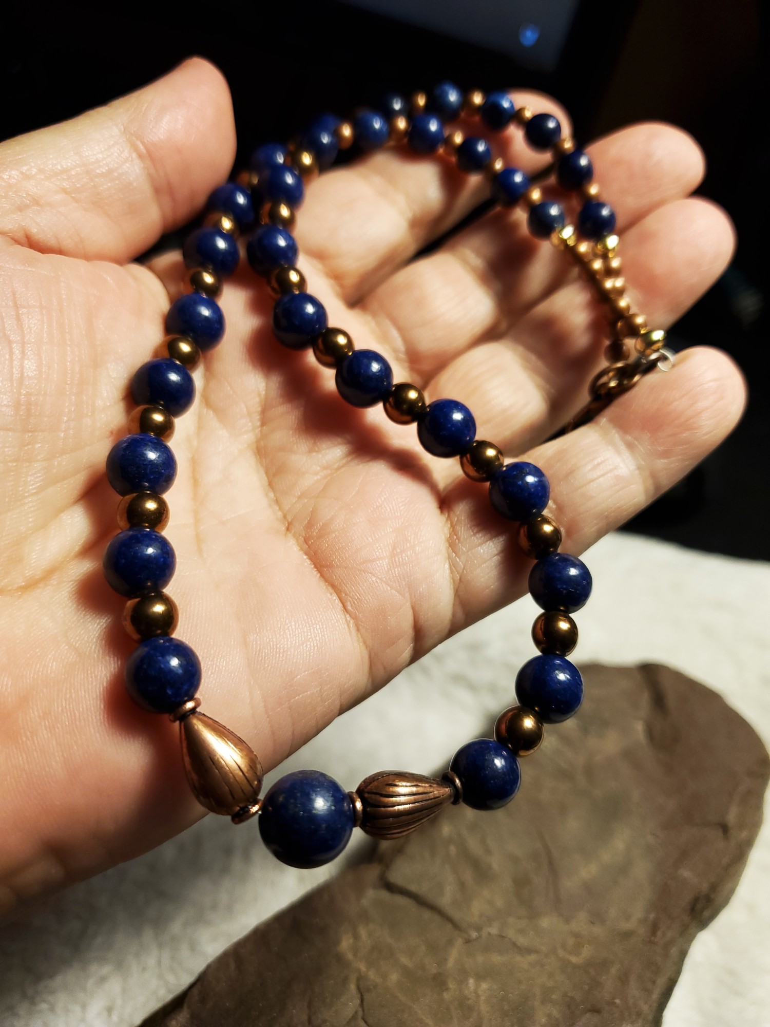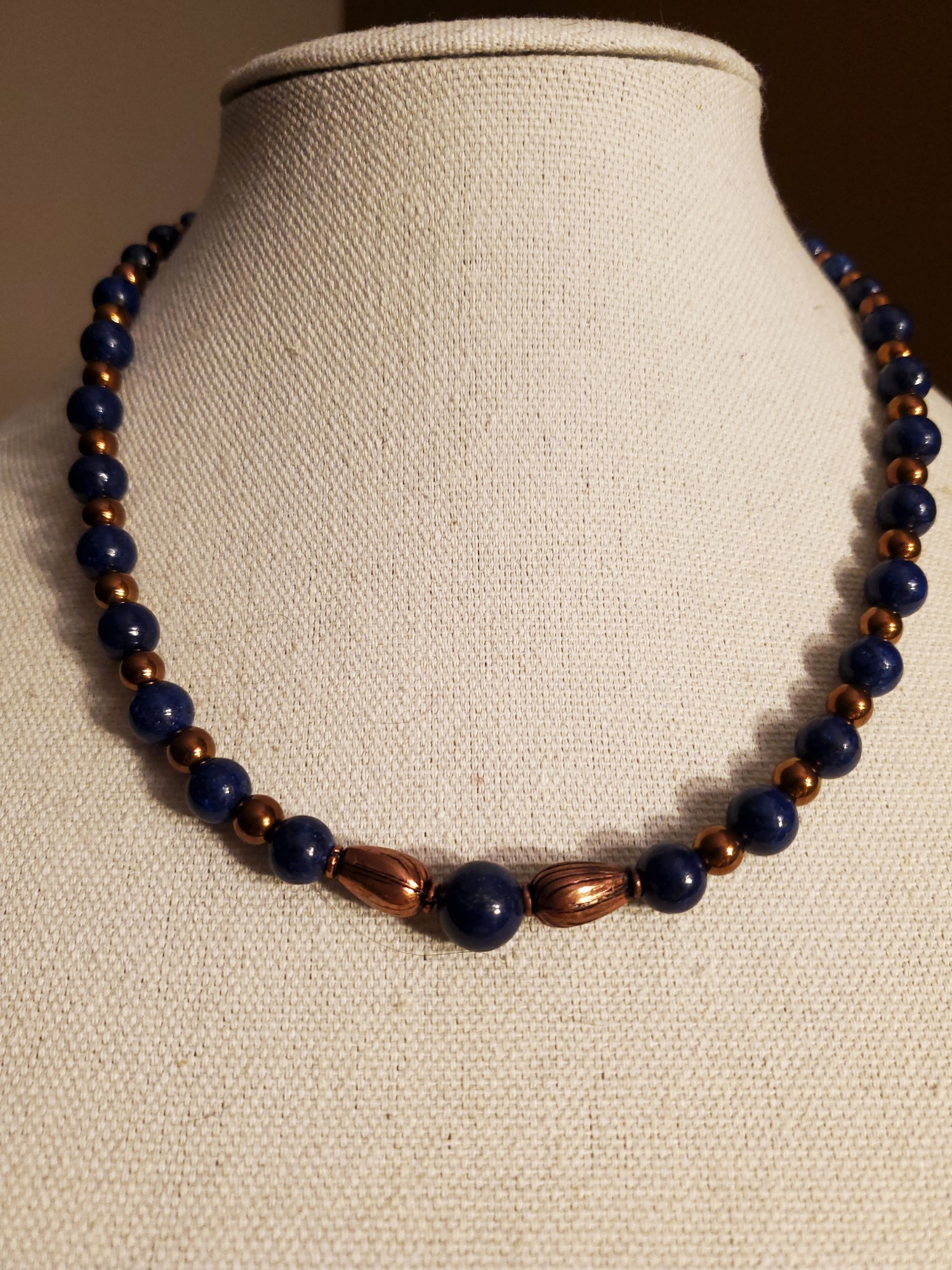 Lapis Lazuli in Copper19" long, can be extended easily if needed#ATSGalleries, #AlextheScribe, #drifasleap, #lapislazuli, #copper, #bronze, #handmadejewelry, #handmade, #smallbusinesslove, #womanownedbusiness
