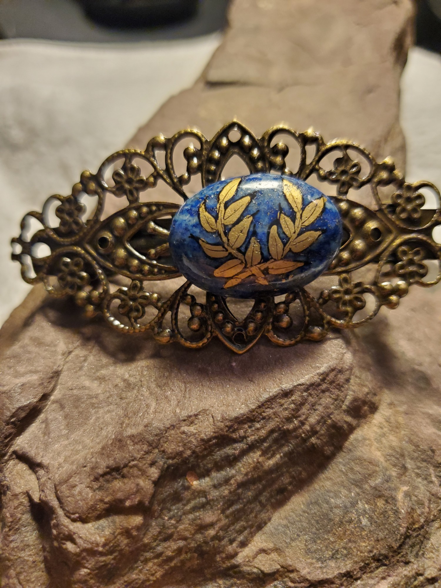 Laurel Lapis Lazuli Hair Clip in Bronze