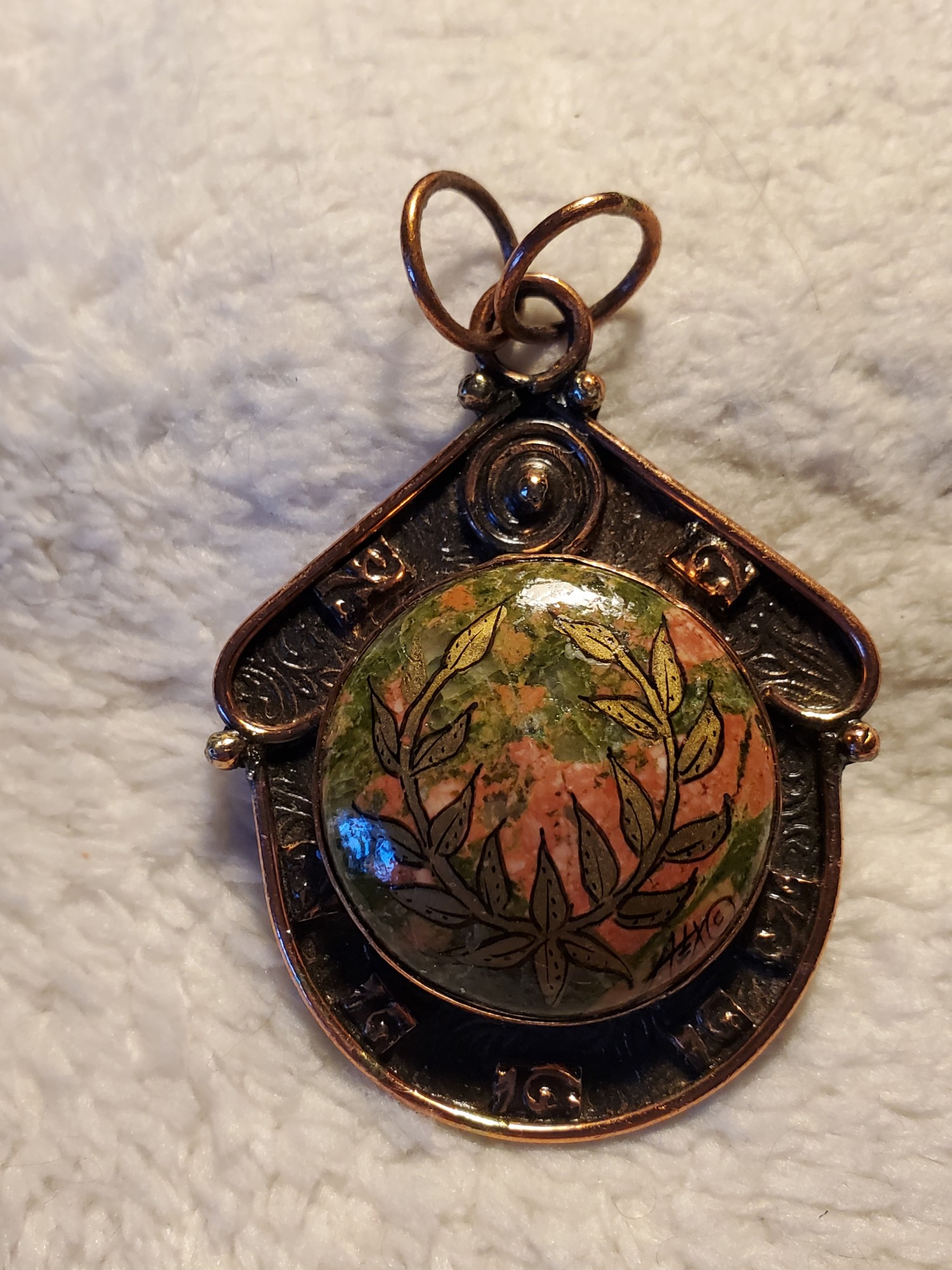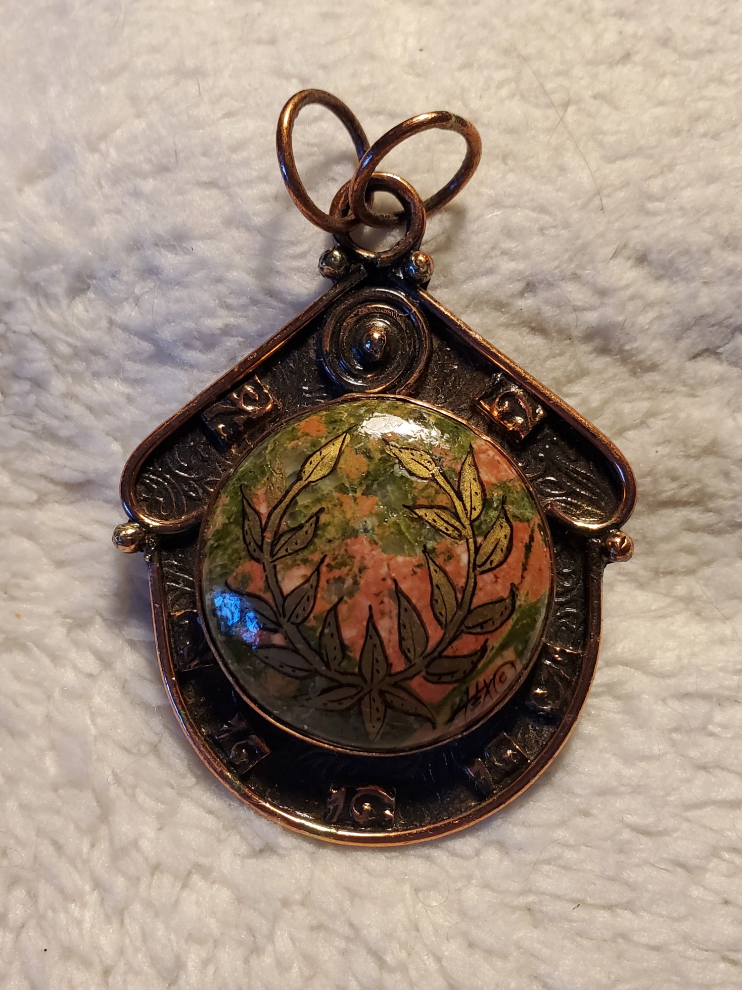 Laurel Unakite Copper Pendant