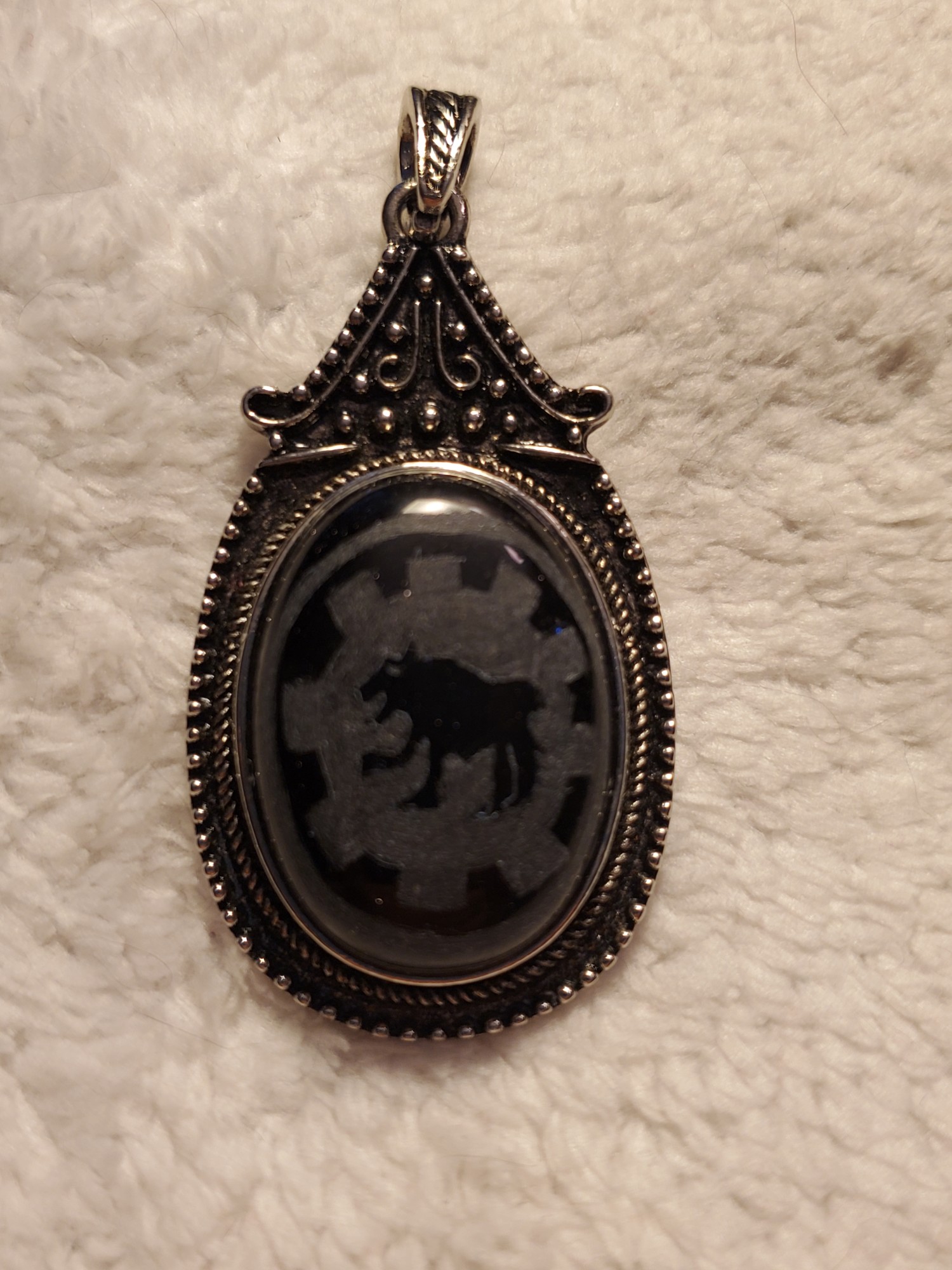Onyx in Tibetan Silver, hand carved, One of a Kind