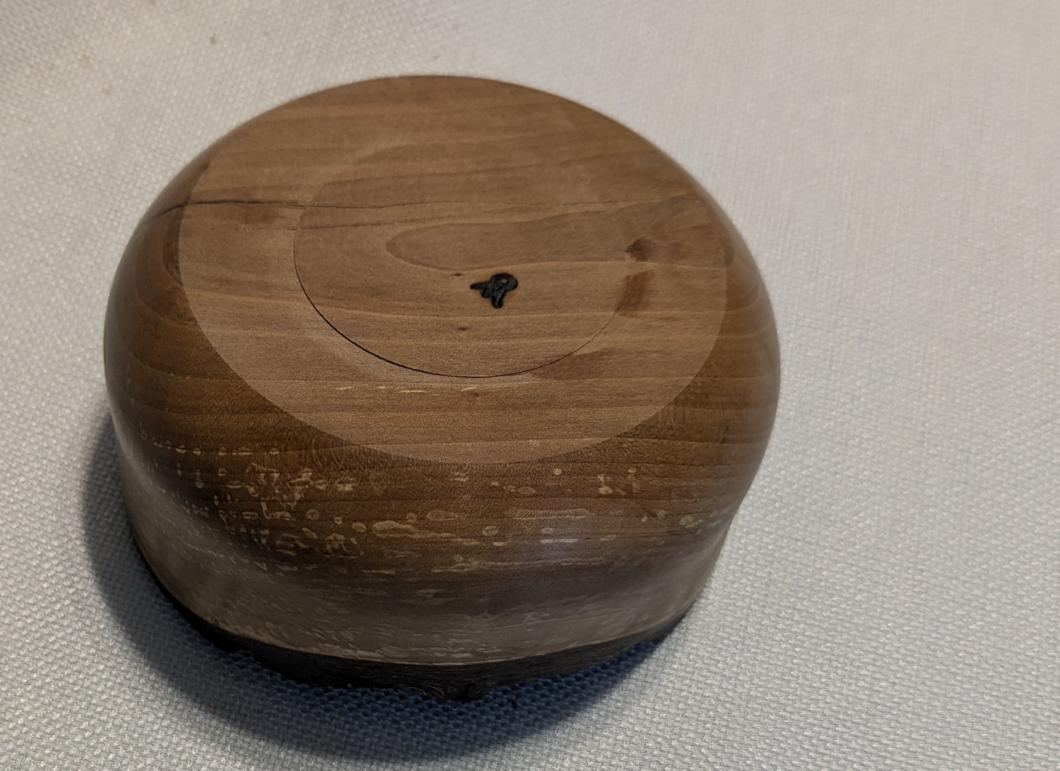 Beautiful, lightly speckled grain and an amber hue, with a live-edge (bark) rim. Finished with food-grade beeswax. Approx. 5" wide and 2" tall.