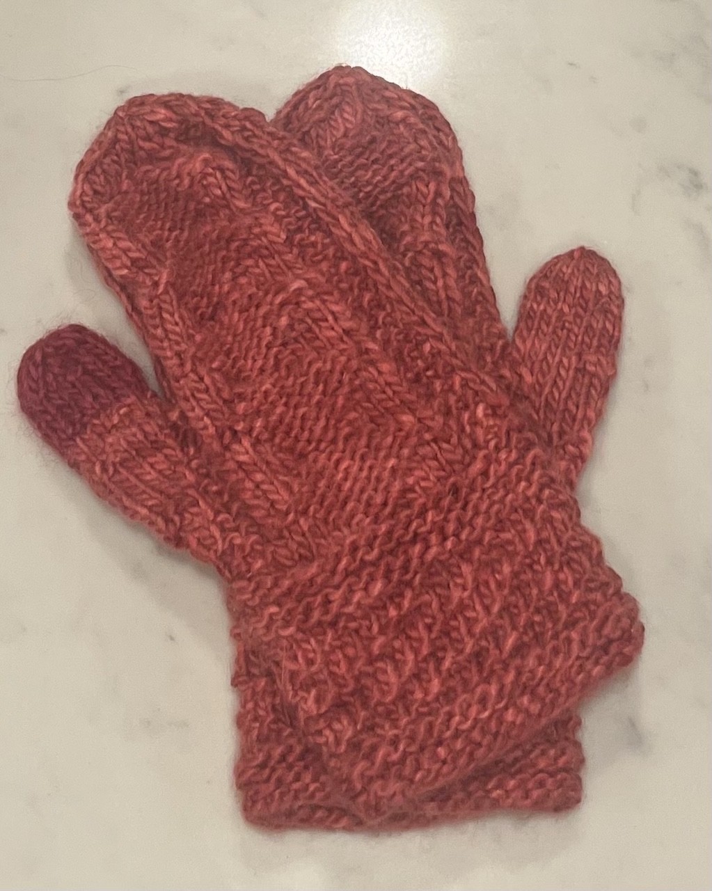 One thumb is darker, is it because I ran out of yarn or is it a design decision? We may never know.