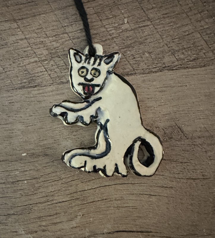 I was inspired to make little hanging ornaments using Medieval Manuscripts as designs. Each ornament is completely hand drawn, cut from clay, and individually painted. Because each cat is handmade separately, there may be some variations, but all are well-crafted. They can be hung from a Holiday tree, or even a wall design in your home or studio.