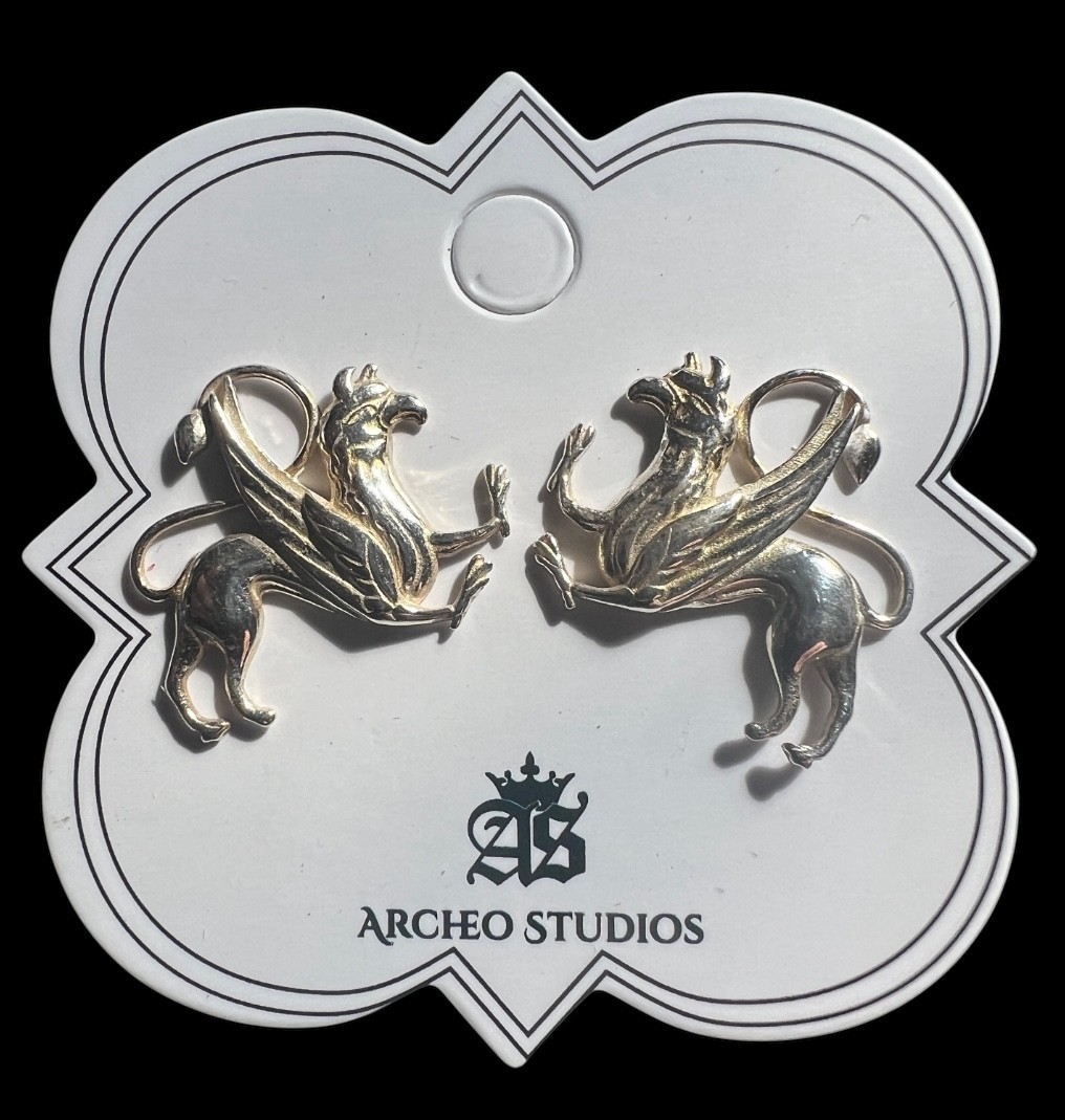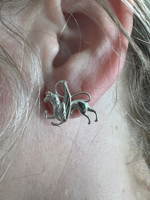 Sterling Silver - Griffin Post Earrings - medieval
