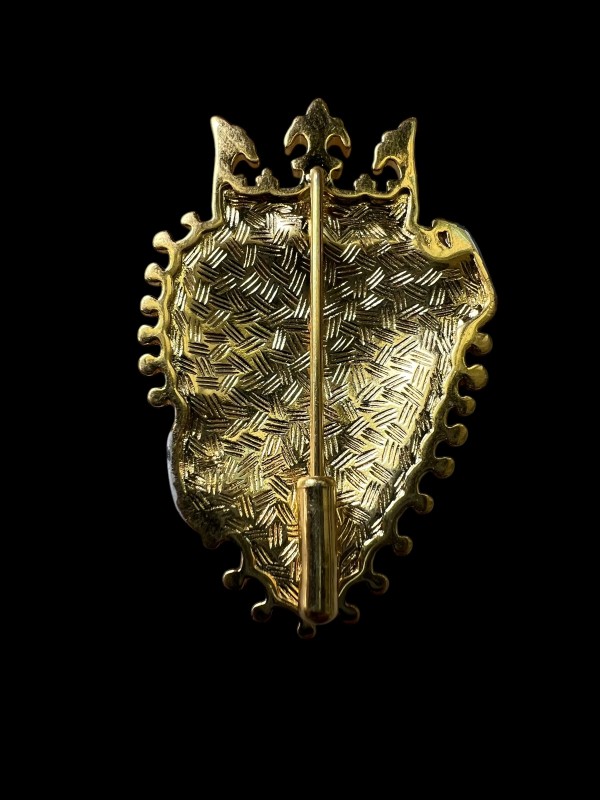 Sculpted from a surviving badge, this "herte be trewe" badge is highly detailed and plated in 18k gold, then hand-painted!