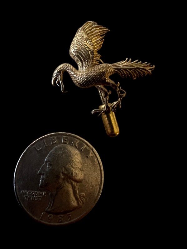 Made from high-detail bearing jewelers' brass, featuring a solid pin on the back side.