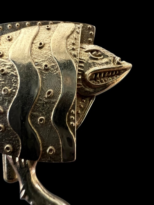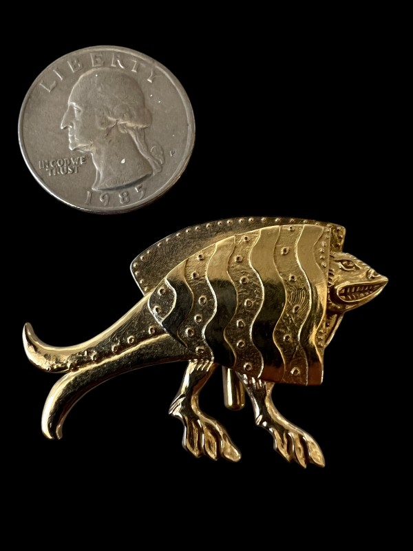 Made from high-detail bearing jewelers' brass, featuring a solid pin on the back side.