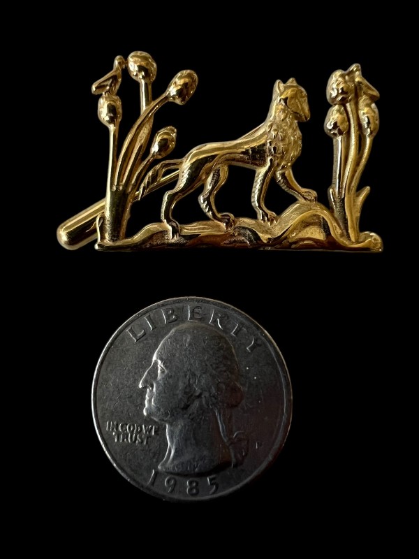 Made from high-detail bearing jewelers' brass, featuring a solid pin on the back side.