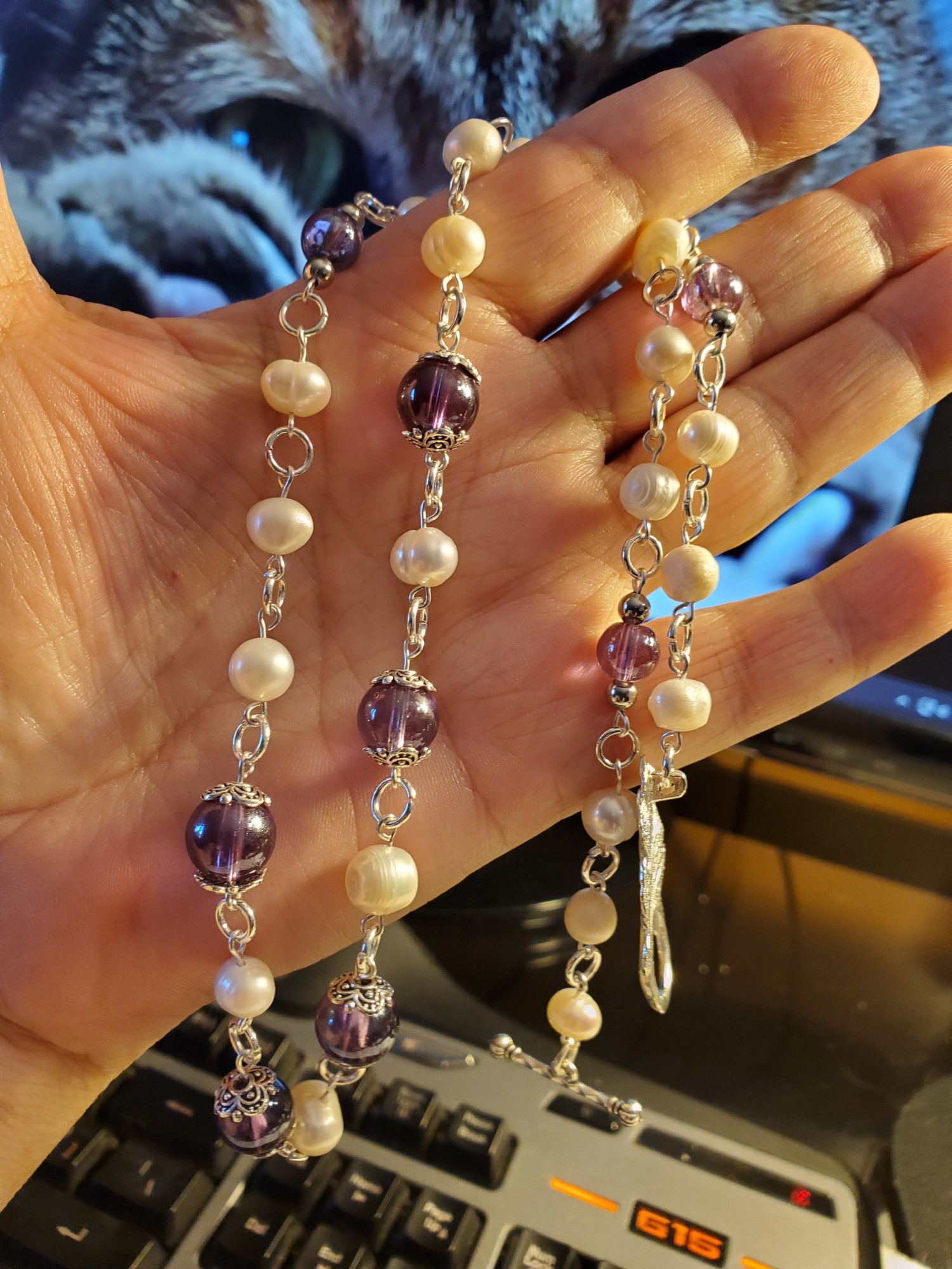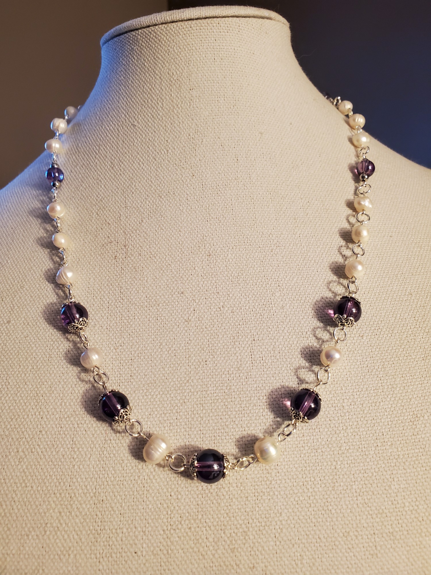 Amethyst and Fresh Water Pearls in Tibetan Silver