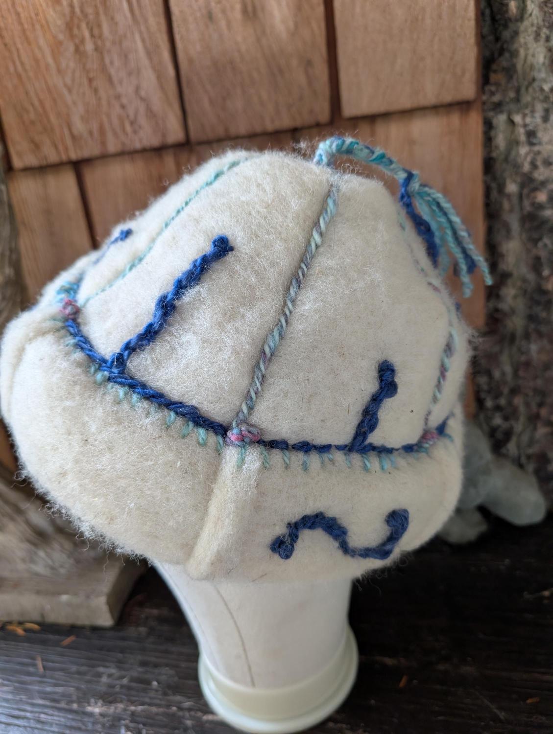 This hat is modeled after the hat from the movie "Mongol". This is my own pattern developed from documentation of the Mongolian Shepherd's This hat is a historical replica of an original.