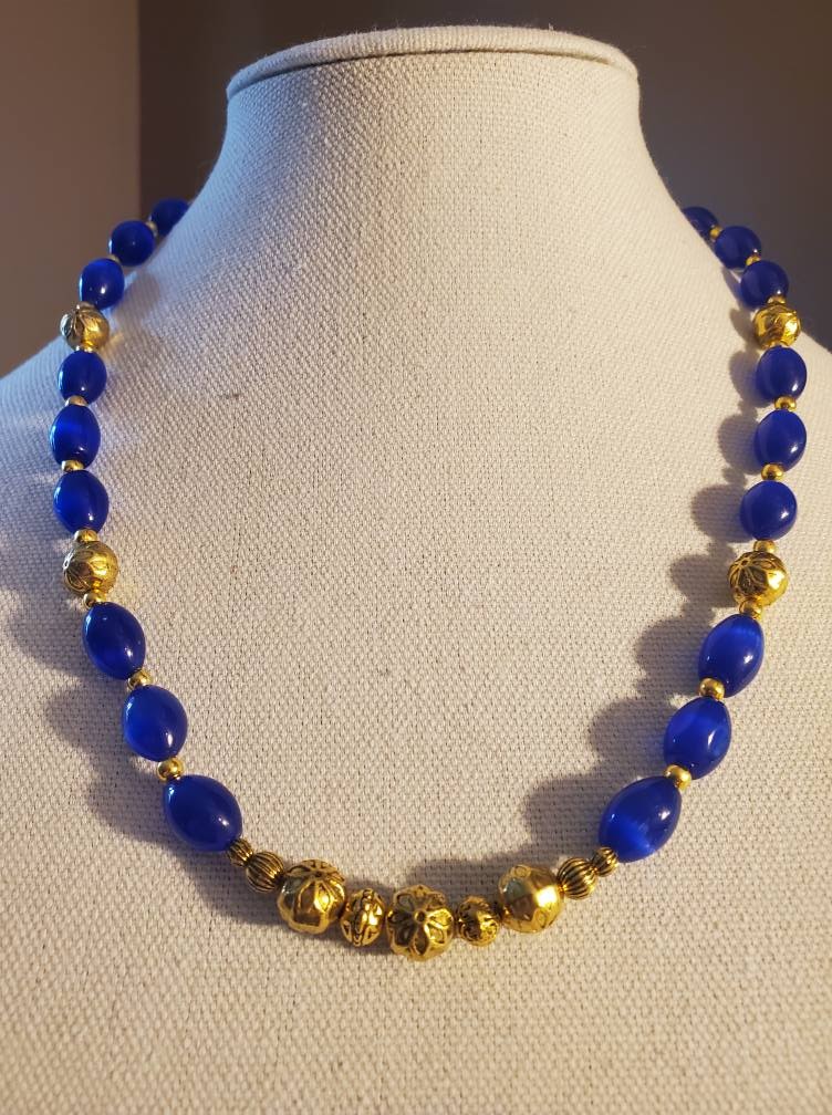 Moonstone Royal Blue Glass Roman style Necklace