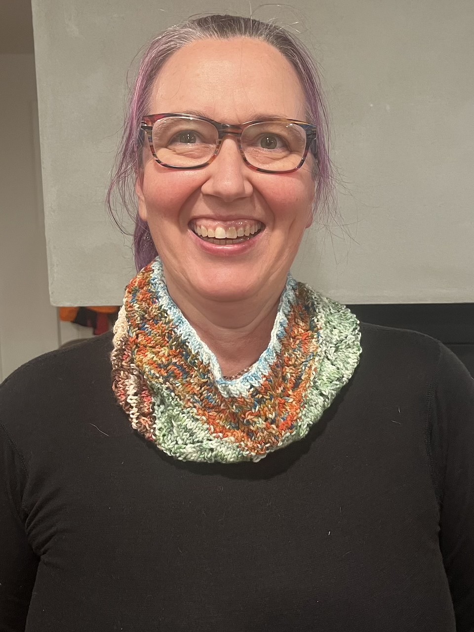 Colorful cowl using some mini skeins I had lying around.