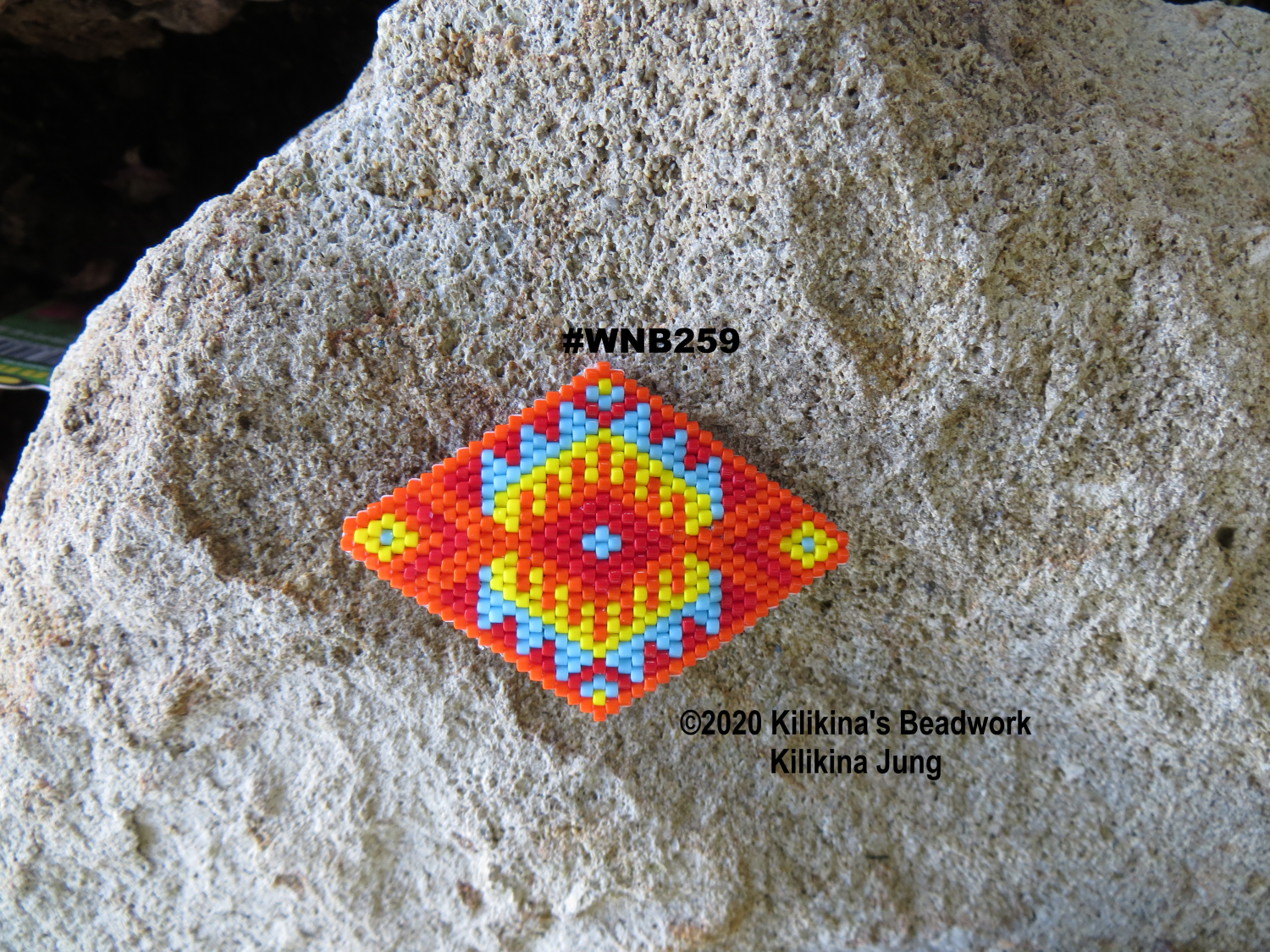 The Beaded Navajo Rug Barrette is made of Delica seed Beads - measures about a little over 2" wide and about 1 1/2" tall. The barrette clasp is a French clip and measures about 1. This barrette is perfect for people with very fine hair or to hold and decorate bangs