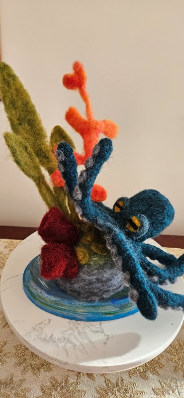 This handmade felt octopus sculpture is made with 100% wool and eco-friendly. A needle felted sea creature is the perfect as a nautical tabletop art or marine housewarming gift.