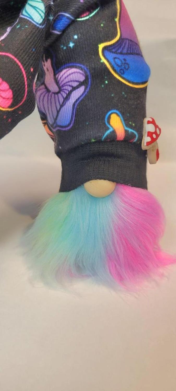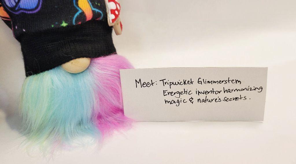 Meet Tripwicket Glimmerstem, the energetic inventor harmonizing magic and nature's secrets, who represents and advocates for neurodiversity and autism awareness. Tripwicket is made from premium materials, weighted and filled with rice and poly-fil. He stands approximately 7" tall and 17" to the tip of his psychedelic mushroom hat, topped with a fuzzy and sparkly blue pompom, and a mushroom button on the side. He has a flowing rainbow colored beard and a wooden nose. Let Tripwicket bring a splash of color to your day and a smile to your face! Help show your support for your choice of awareness months. More choices are available in my listings.