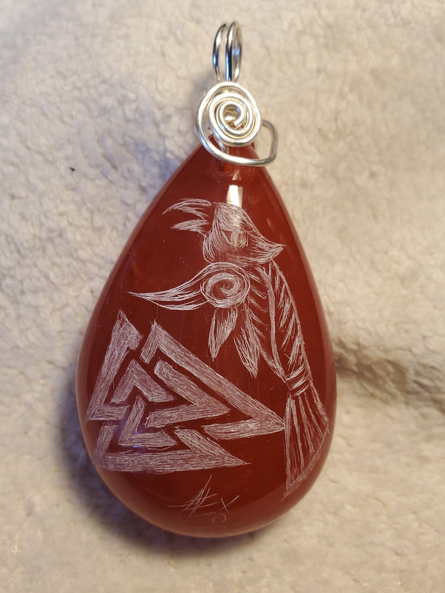 #ATSGalleries, #AlextheScribe,, #drifasleap, #pendant, #Odin, #Raven, #Amber, #handcarved