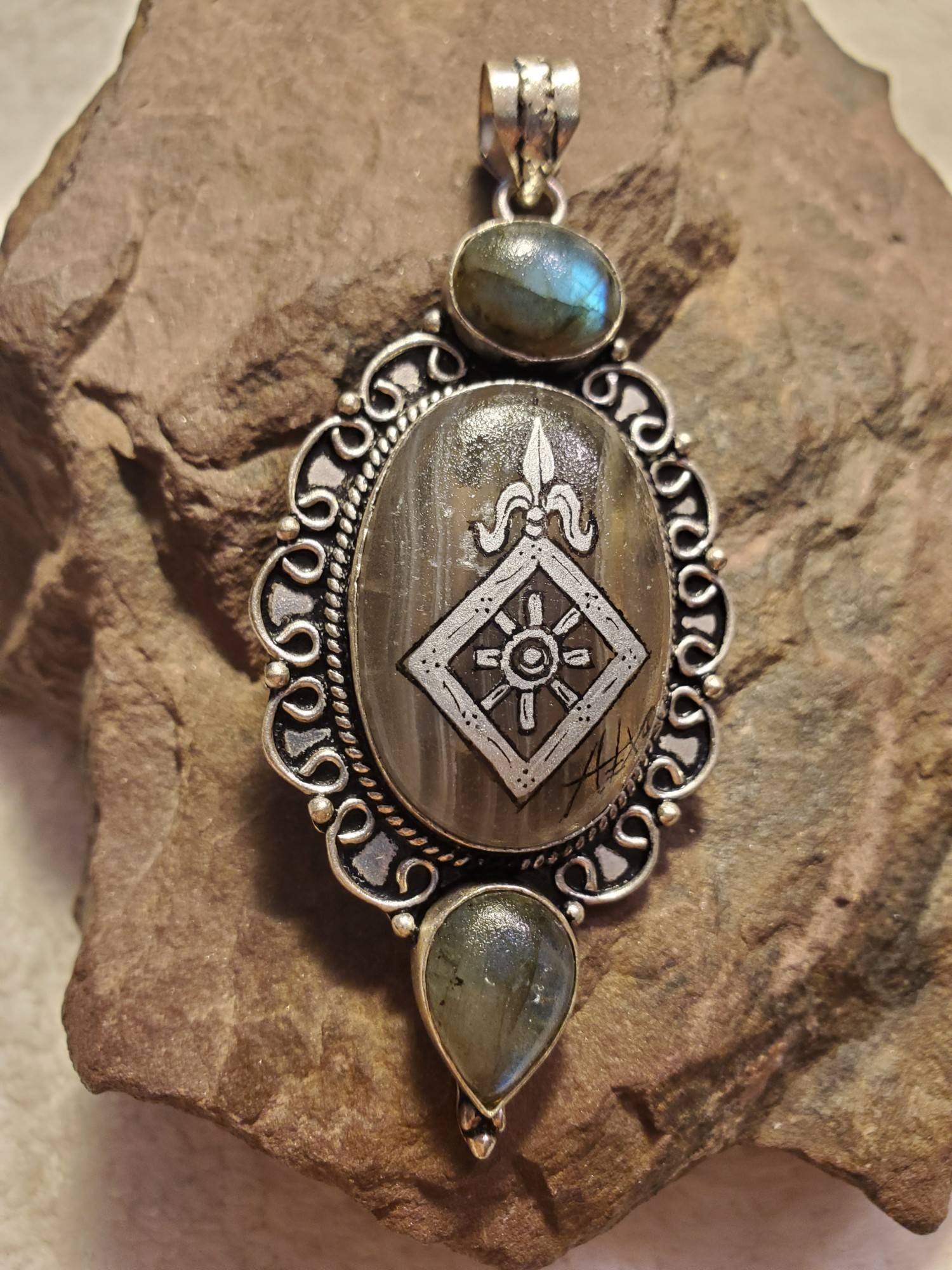 Order of the Mark Onyx Pendant in Bronze, One of a kind , Labradorites in Sterling Silver