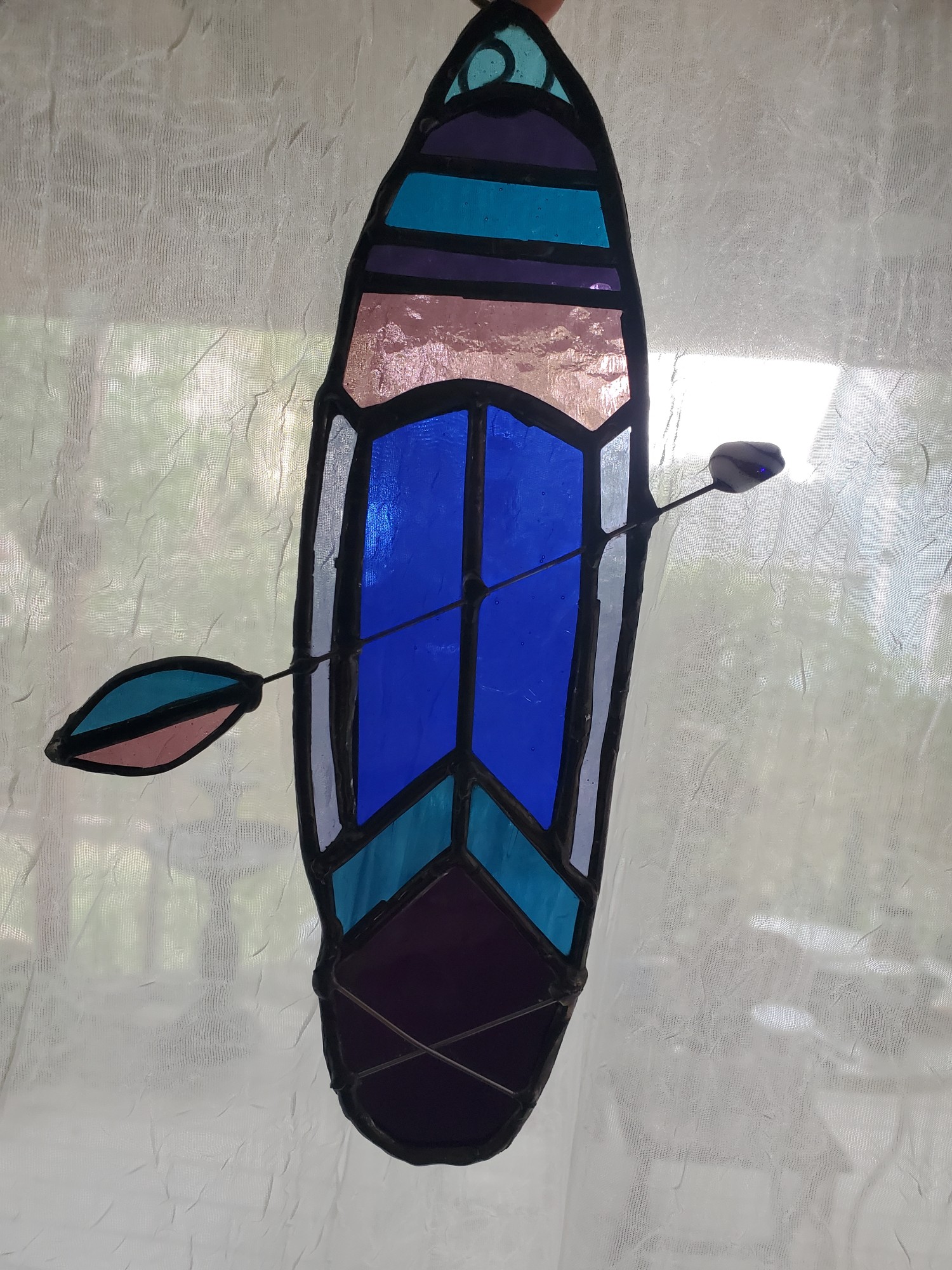 This Dark purple and blue suncatcher is absolutely made for the Paddleboard-enthusiast in your life. When summer ends, this piece will bring back awesome memories of time on the lake, floating and paddling along with the waves.