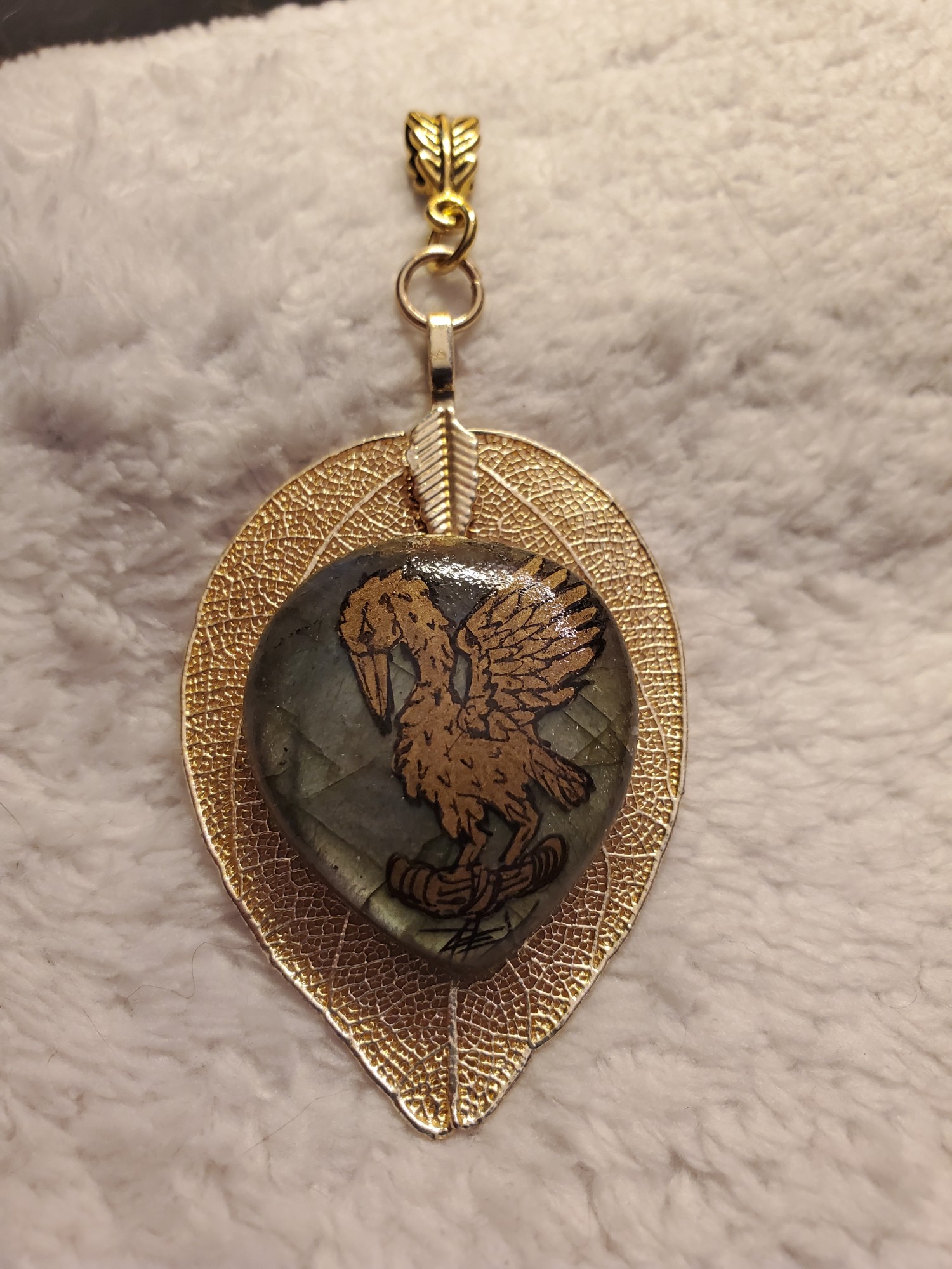Pelican Green Flash Labradorite PendantCrushed Gold Leaf Enamel in 14k GoldOne of a Kind#ATSGalleries, #AlextheScribe, #drifasleap, #handmadejewelry, #handmadewithlove, #jewelryofinstagram, #SCA,#greenflash, #labradorite, #Pelican