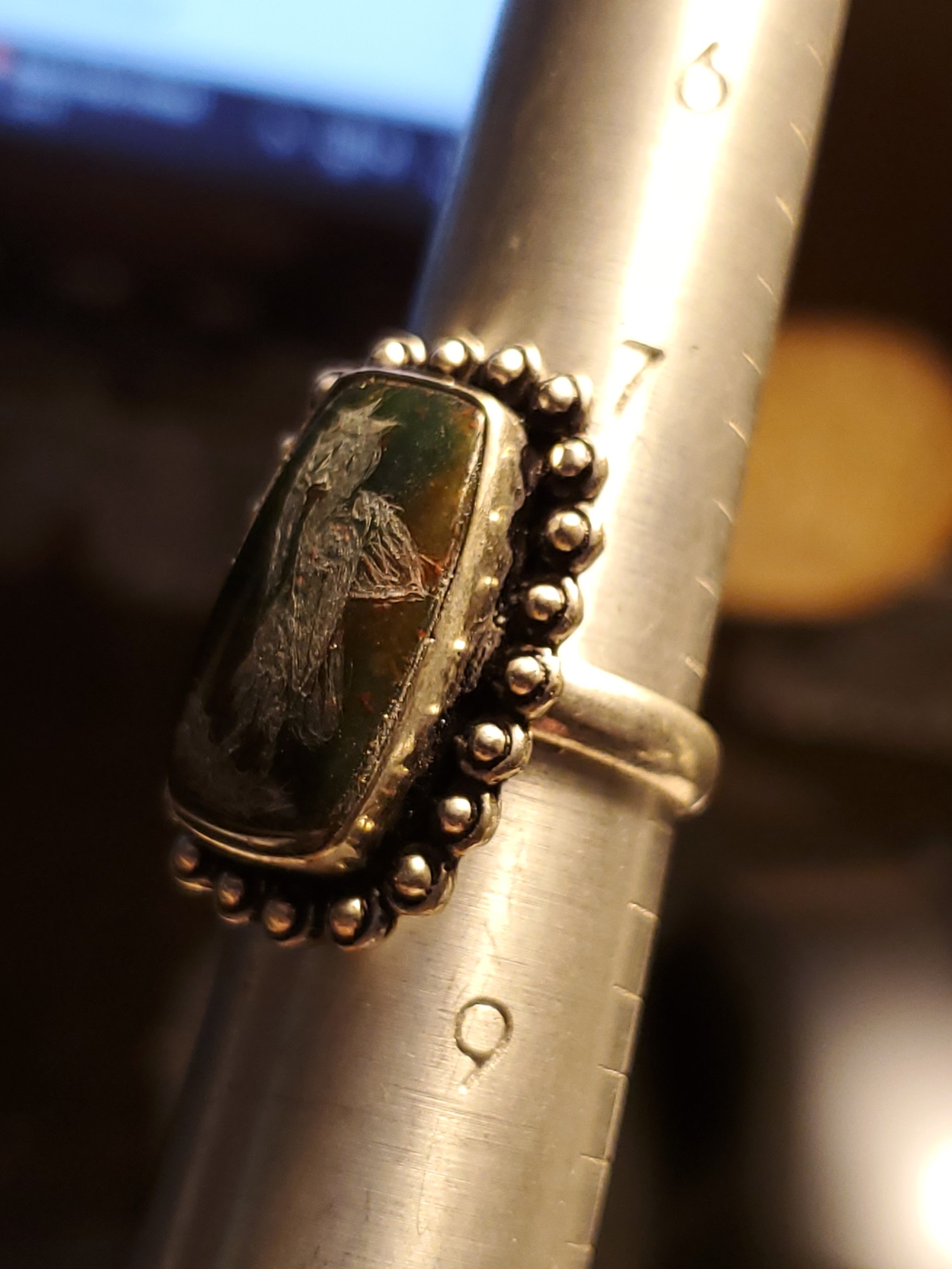 Pelican Intaglio Ring Dragonblood Sterling Silver 8