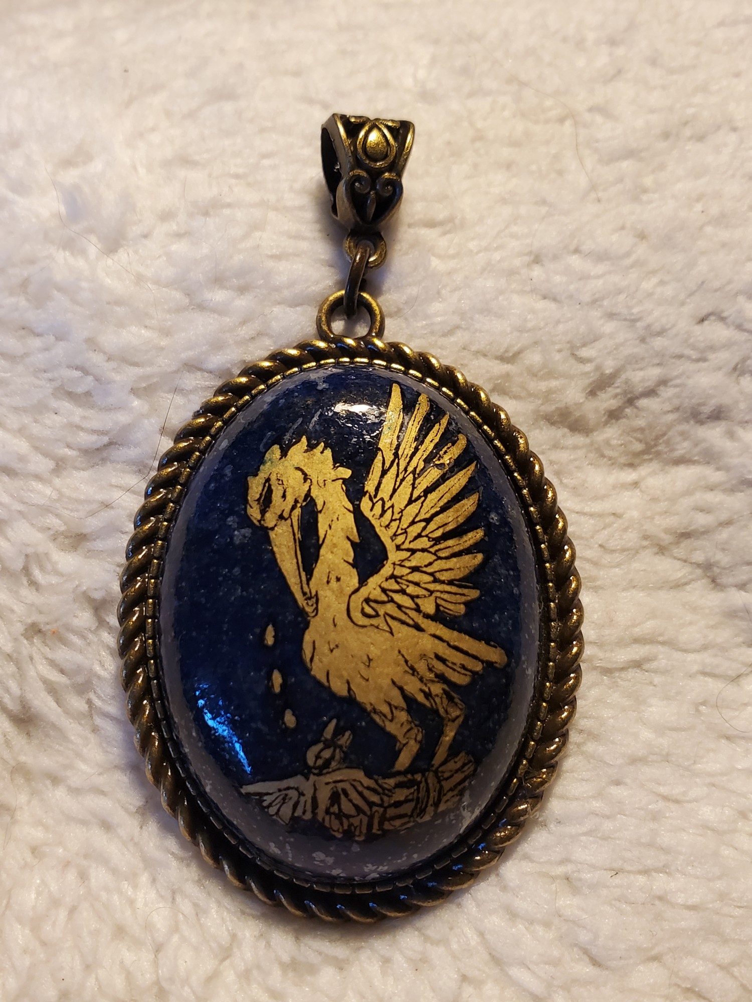 Pelican Lapis Lazuli Bronze PendantCrushed Gold Leaf Enamel, One of a Kind#ATSGalleries, #AlextheScribe, #drifasleap, #Pelican , #sca, #peerage,#handmadewithlove, #handmadejewelry, #pelican , #lapislazuli