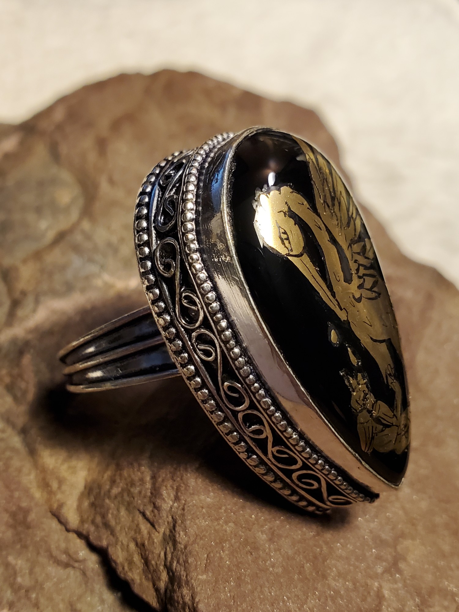 #ATSGalleries#AlextheScribe#drifasleap#rings#handmadejewelry,#Onyx , #Pelican , #smallbusinesssupportingsmallbusiness#womanownedbusiness