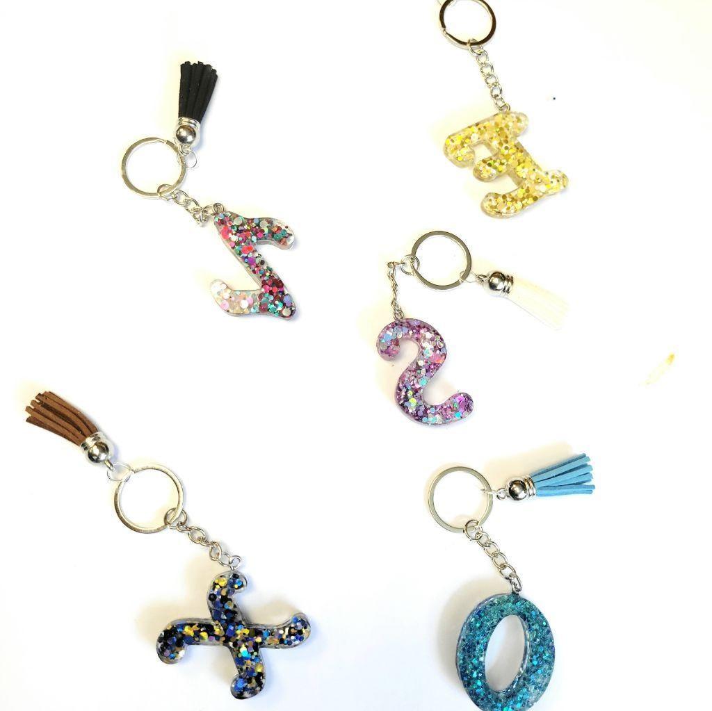 Personalized, 1.5" Resin,Shattered Glass,Glittery, Alphabet Keychains,bag charms