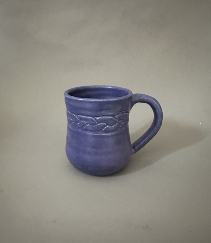 This mug was thrown on my potter's wheel and then carved by hand as an original design. I do not use any stencils or patterns, it's all done freehand. This mug design was inspired by the Celtic knotwork from the "Book of Kells.