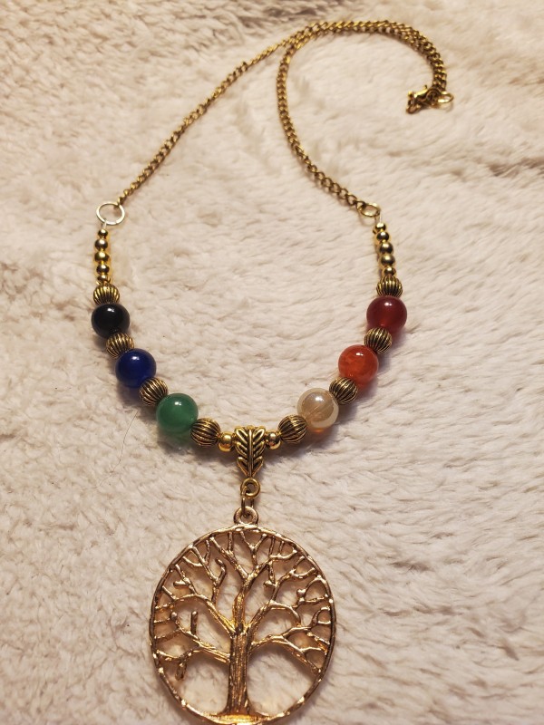 Rainbow Tree of Life Necklace, Agates and gold filled findings, 18" long