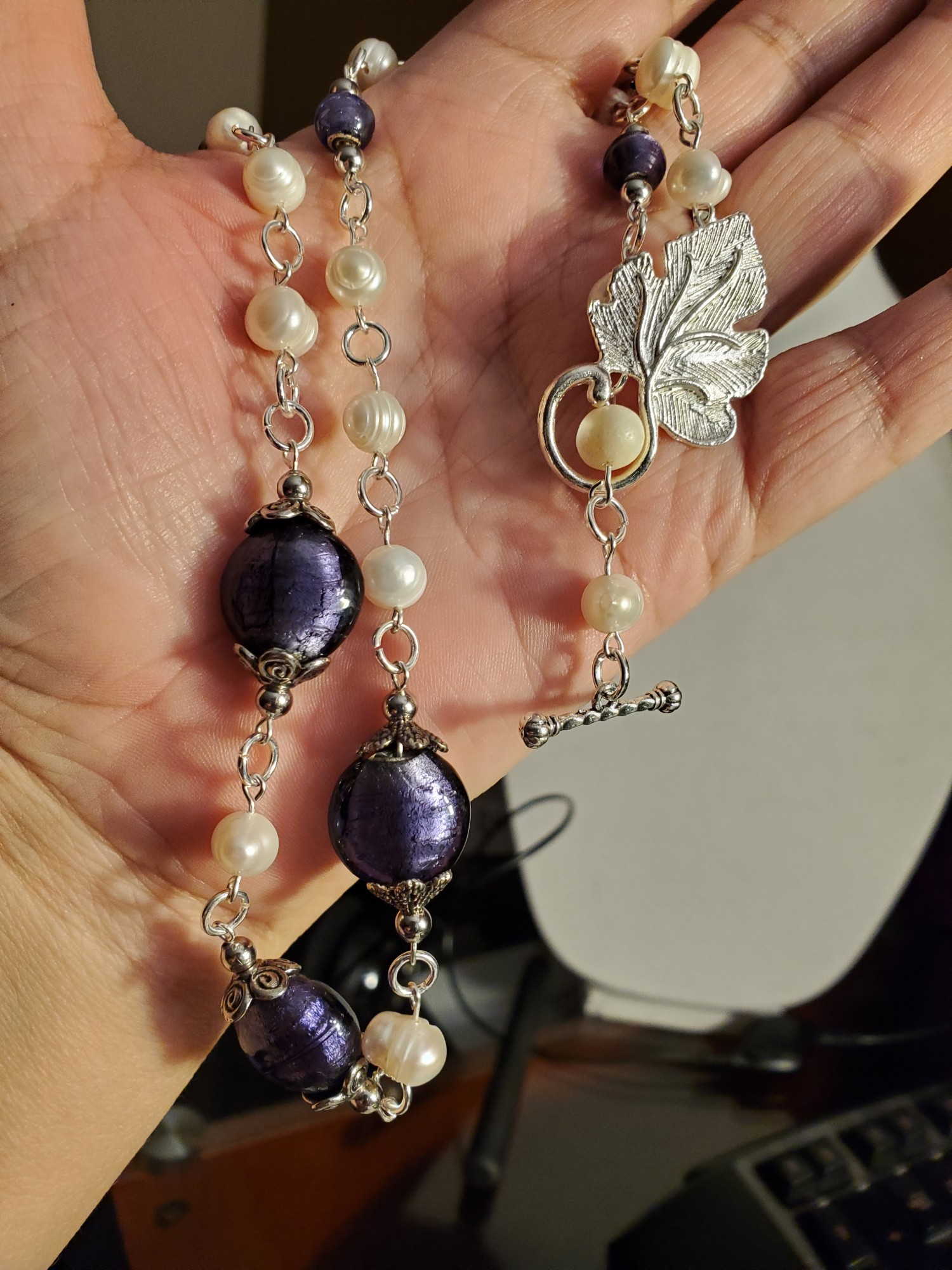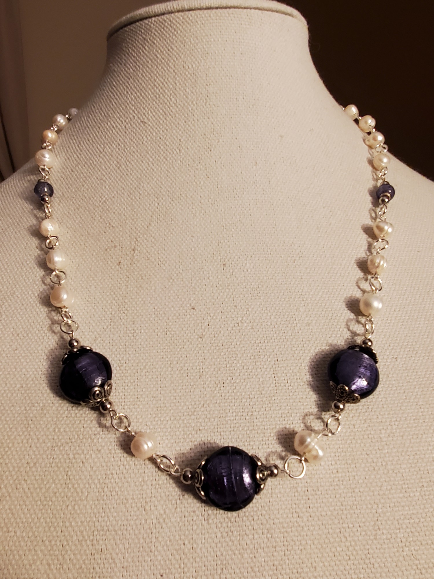 - Roman inspired Lavender Lamp Work Glass and Fresh Water Pearls , 21" long