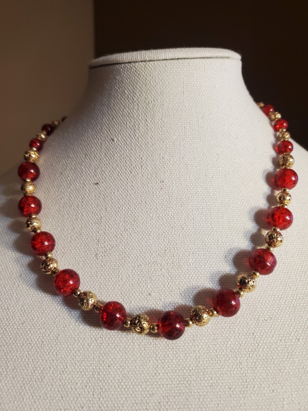 Red Flames Necklace, Murano Glass with chrystallized Agate, 20" long