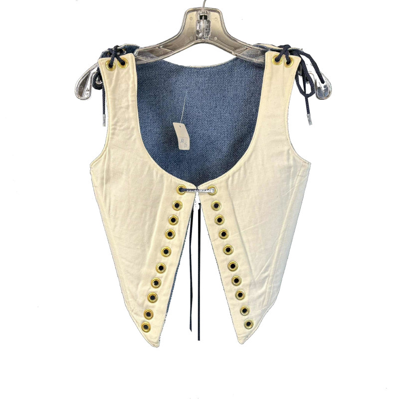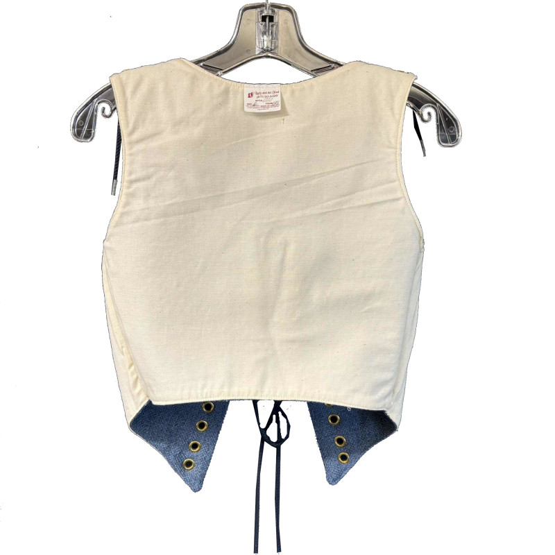 Blue cotton wool blend bodice. Made to work and play in! Standard basic Renaissance Bodice with Shoulder laces. The shoulder lace bodices are great for a short or long torso. Makes more of a custom fit. Reverses to a solid creme cotton. Perfect for those who work Ren Faire or just go and play. Made sturdy to last and hold you up without falling out! Center metal boning for the support you need! Rigilene boned on the diagonal for lift and support. Lady & The Fool bodices are well known for their comfort but still providing the correct silhouette! Approx. size 6. Bust 32" (fits a 33"-36"), Waist 25" (fits 25"-26"). Renaissance Faire approved style and fit. Please check your measurements! Measure across the belly button. Don’t just go by the size listed. Use the measurements. A proper fit bodice adds to 2"+ to the cleavage and takes 1" off of the waist. Originally $80.00. Lady and The Fool Fyne Renaissance Clothiers.