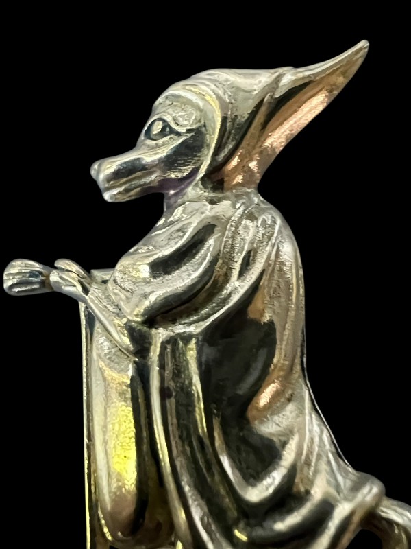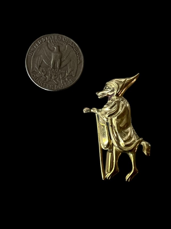 Our pin is based on a manuscript illumination showing Reynard the trickster in one of his myriad disguises, often impersonating a priest.