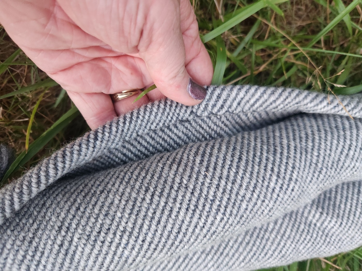 The photo in blue with blue ties is similar wraps in action. He tried them on just to help me out, and never let them go! Wore them all day, and took them home! The photo in grey is showing how the seams are hand sewn.