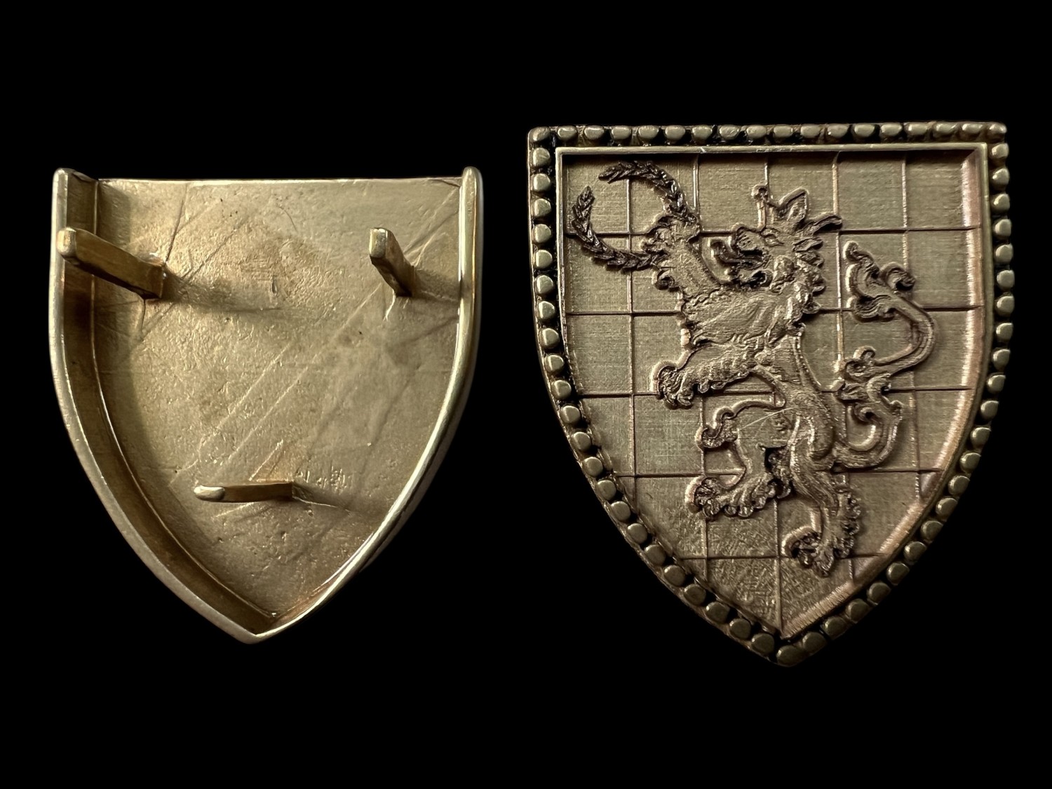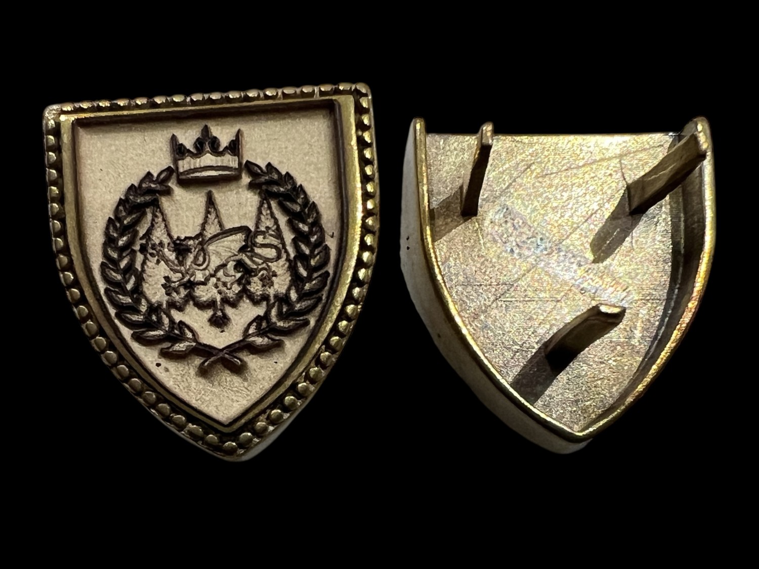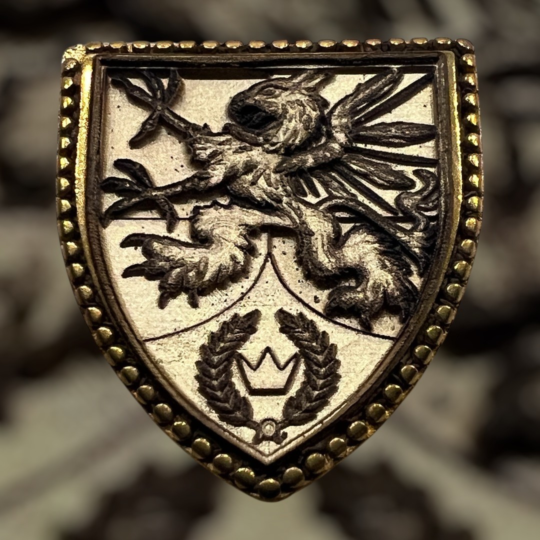 Custom engraved big pins 7/8" long x 5/8" wide, emblazoned with the SCA kingdom device OR the populous badge. Please indicate in the notes whether you want the kingdom device or the populous badge; I've made both.