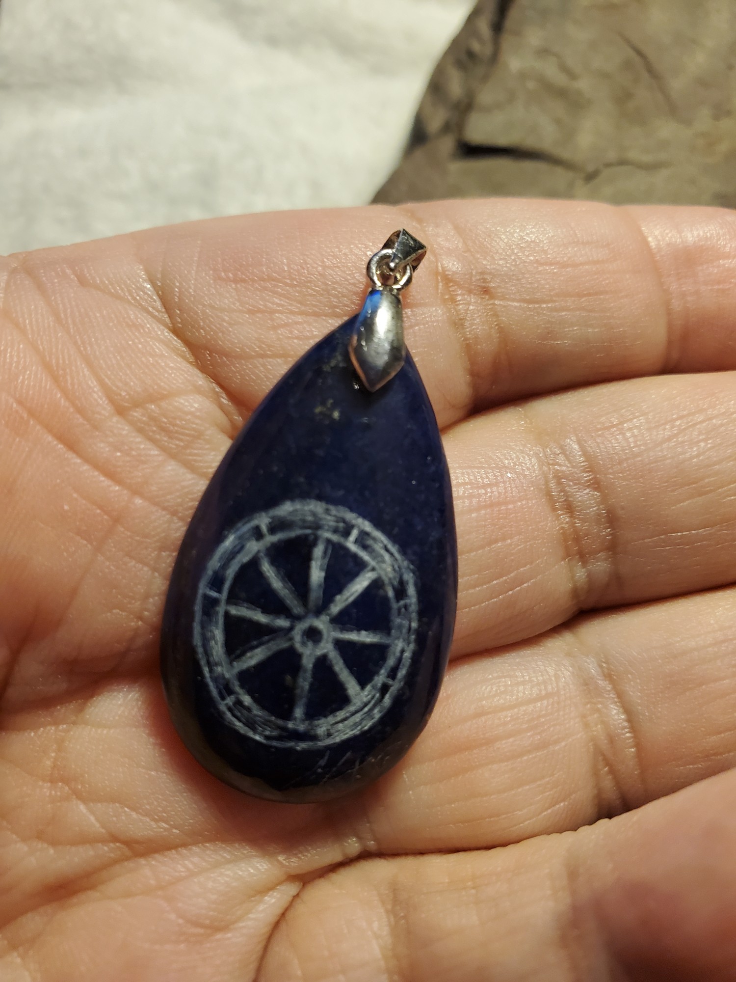 Silver Wheel , East Kingdom Award, hand carved Intaglio Lapis Lazuli in Sterling Silver