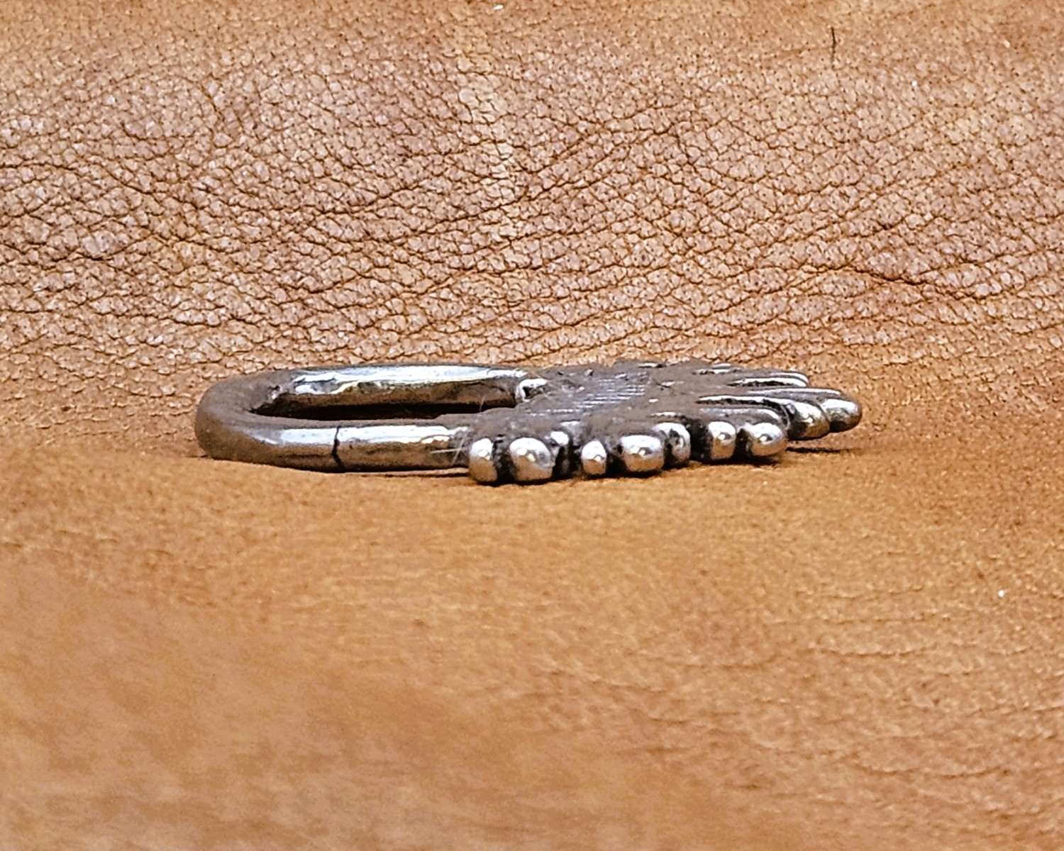Dimensions: 3cm x 2.5cm x .2. Opening is 2cm at the widest point