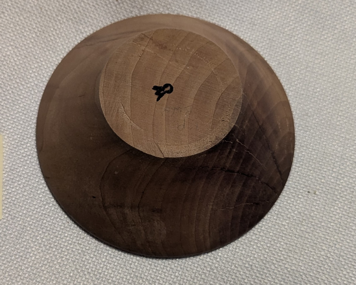 Small conical dish made from gorgeously grained, dark amber pearwood. Finished with beeswax. Approx. 5" wide and 1.5" tall.