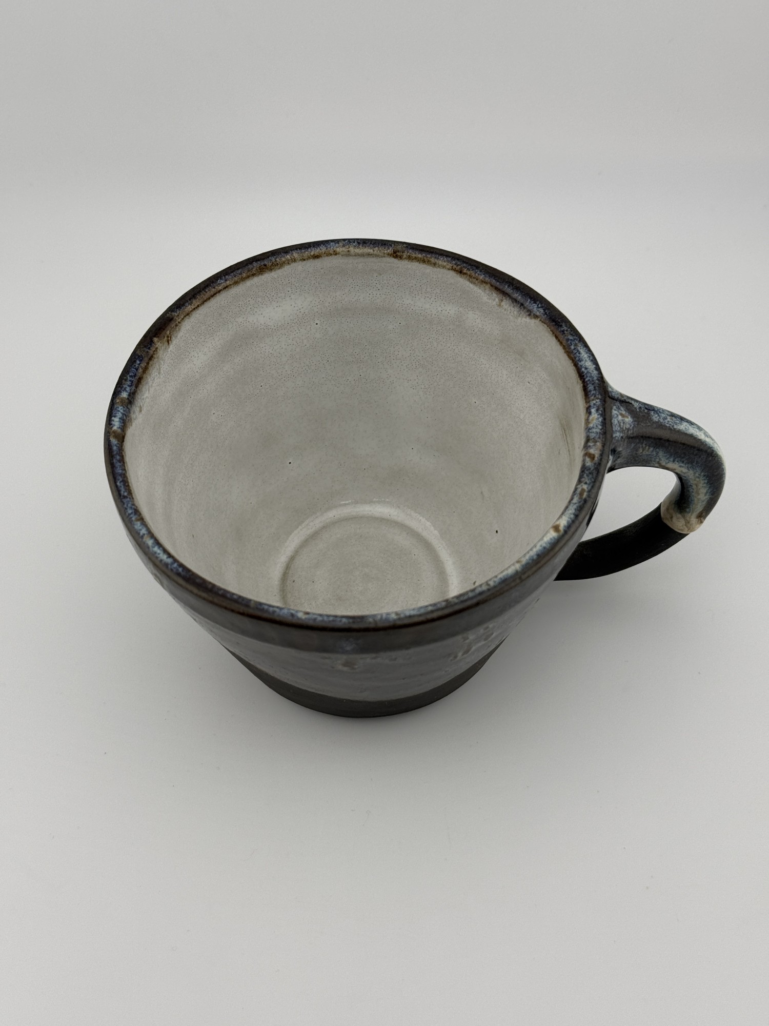 This one-of-a-kind coffee cup brings a little art to your morning ritual. Hand-thrown from rich black clay, it features a mesmerizing glaze on the outside that evokes the swirling, dreamy sky of Starry Night. The contrast continues inside with a clean white glaze, making each sip feel like a moment of calm. Measuring 4 inches wide by 3 inches tall, it’s the perfect balance of beauty and function—crafted with care, and made to be enjoyed daily.