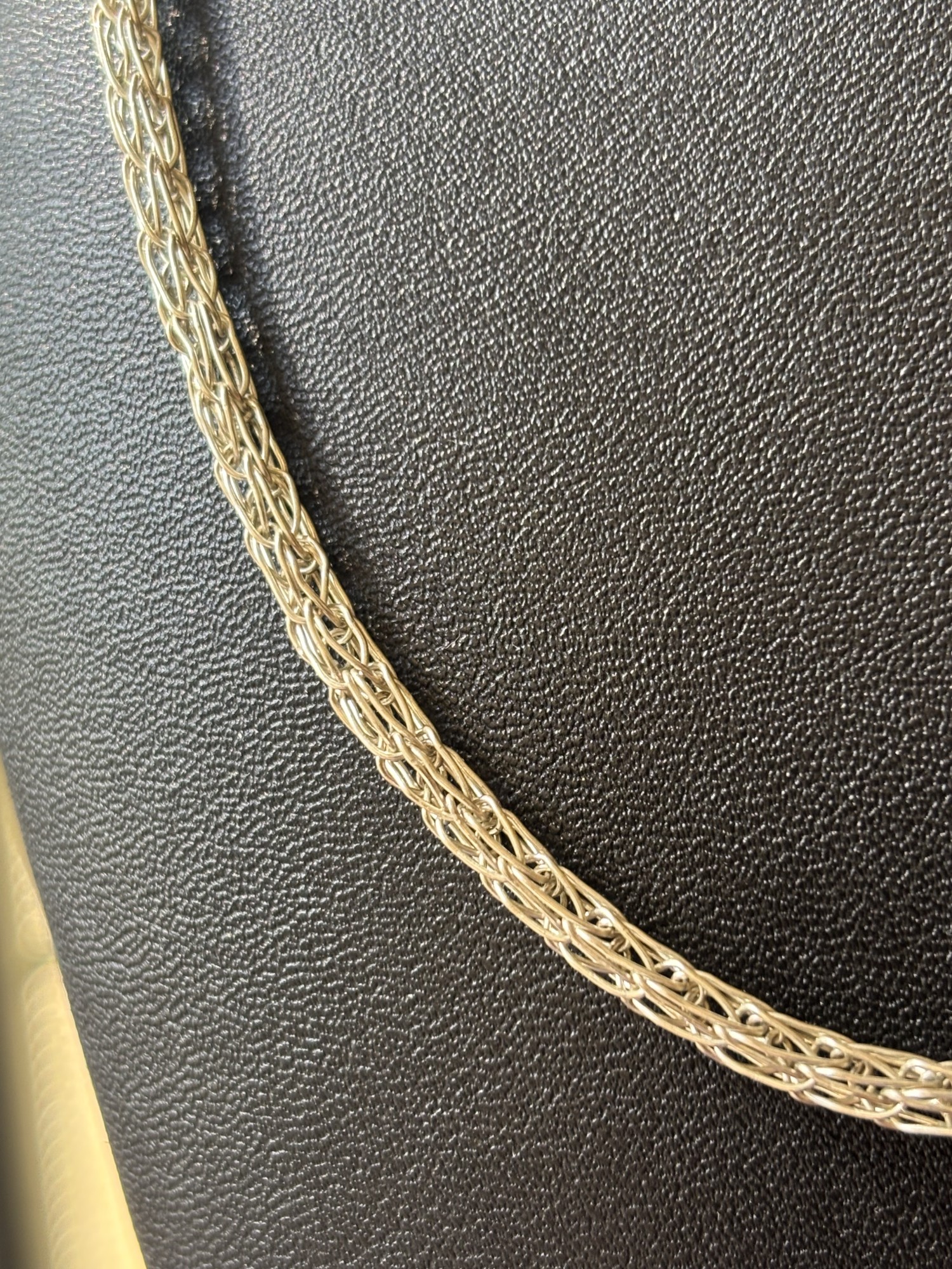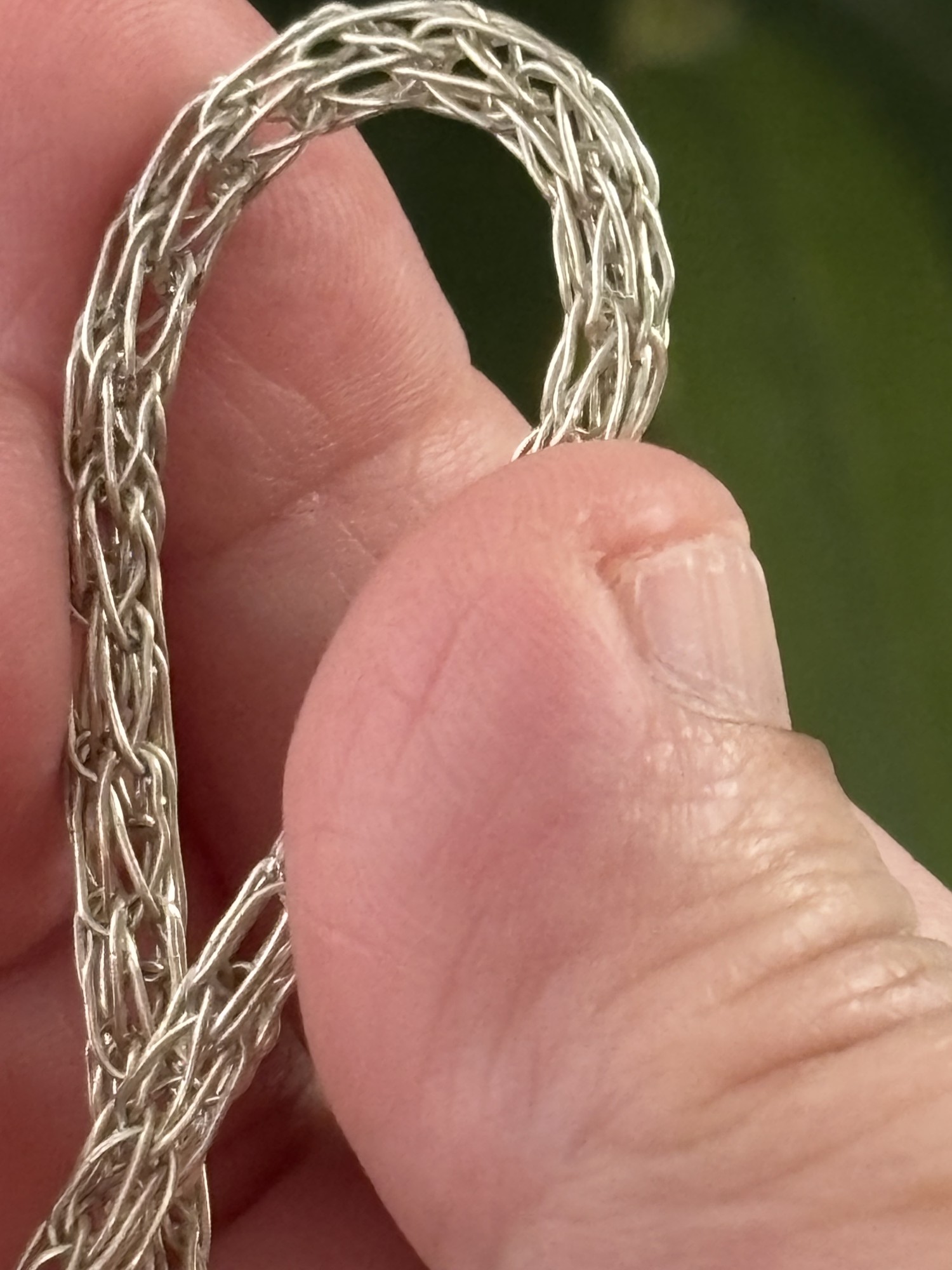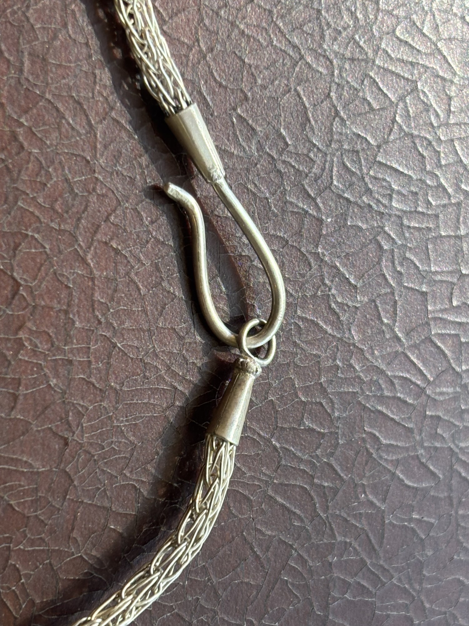 I handmade this sterling silver necklace with a technique called Viking wire weaving, and it’s light and flexible - very comfortable! The hook closure is hand shaped to be easy to use, securely hand soldered, and comfortable on your neck. Made from reclaimed sterling silver. (See my other listings for some with interchangeable front clasps with gemstones). Including the hook, the chain is 19.25” long, 3.5mm wide. Will be delivered in a lovely gift box with an anti-tarnish tab. Message me for a custom size!