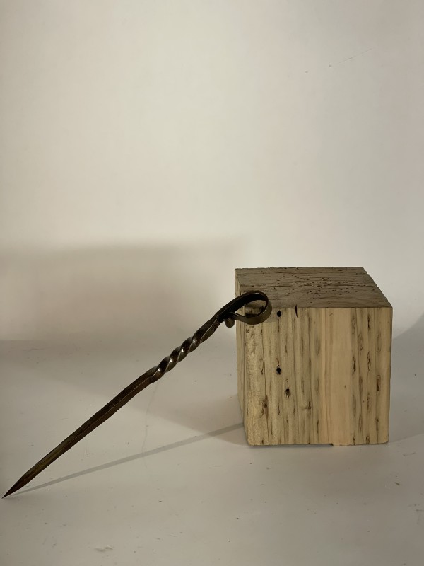 Forged from 1/4" square stock, they are drawn to a point, have a twist in the middle and a loop on the other end.