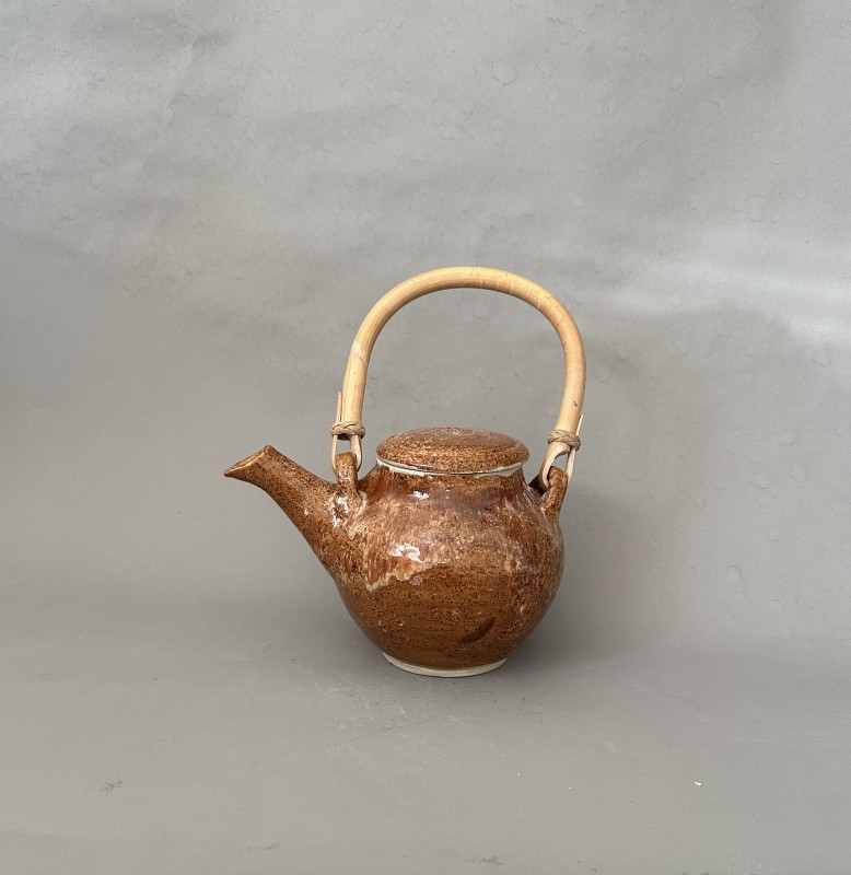 This handsome teapot is handmade to brew tea the way tea should be made. It is for practical use as well as a beautiful display piece. The pot is pleasantly heavy enough to keep the tea warm while it is brewed, the spout is trimmed to a practical angle to aid the pouring of the liquid, and the lid is deep enough that it will not fall off while the tea is poured. The bamboo handle will give a wonderful feel of balance while holding and pouring your beverage.