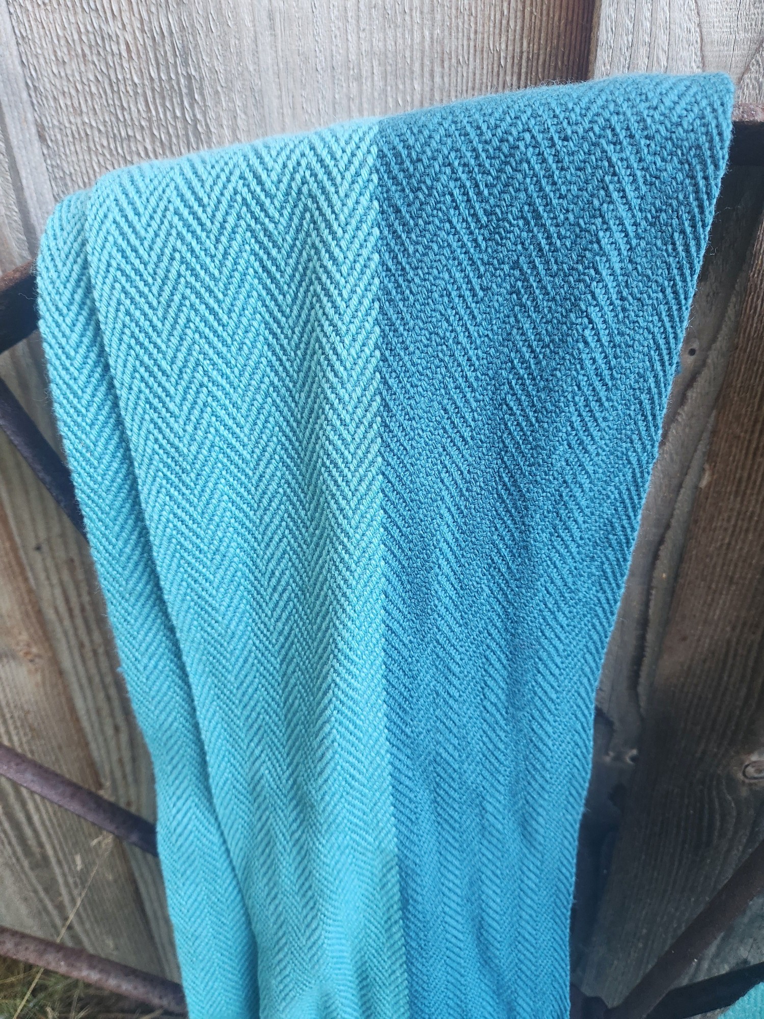 Made in a gorgeous two-tone teal, finished with fringe ends, and crafted to be soft, warm, and breathable for cold days.