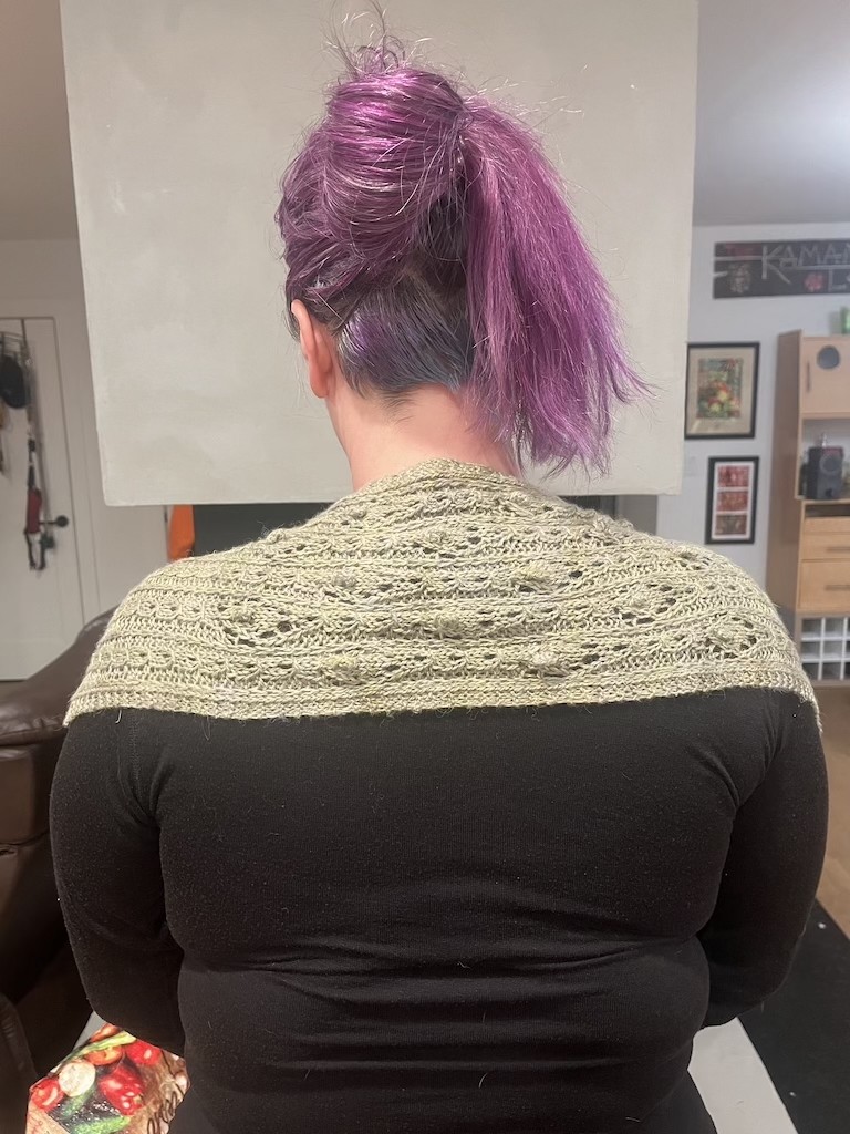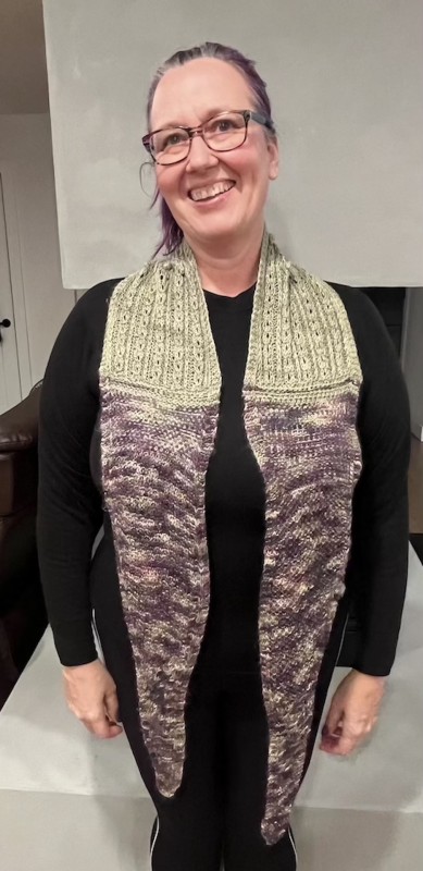 Lightweight scarf designed in the colors of earth's summer blooms, with stitch patterns that bring to mind the cosmos.