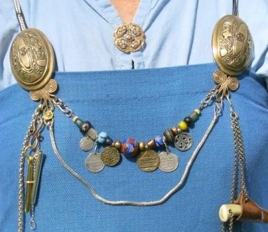 Over time, tortoise brooches increased in design complexity. These Ribe 5 brooches are transitional from Vendel to Viking Age brooch embellishment. Tortoise brooches were worn on women's apron dresses as an expression of status. The originals of these brooches are in the Dublin Museum. Officially called Berdal Ribe Type 5, examples of this style have also been found in Norway, Sweden and named based on broken brooch molds found at Ribe Denmark. The originals are a pair of brooches kept in the Dublin collection.
