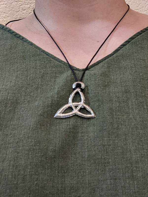 Representative of trinity in many religions and cultures, the triquetra is a common symbol even today. This triquetra is cast in a seemingly delicate way, with its hollow appearance and lightweight feel, but will last ages thanks to pewter's corrosion resistant properties.